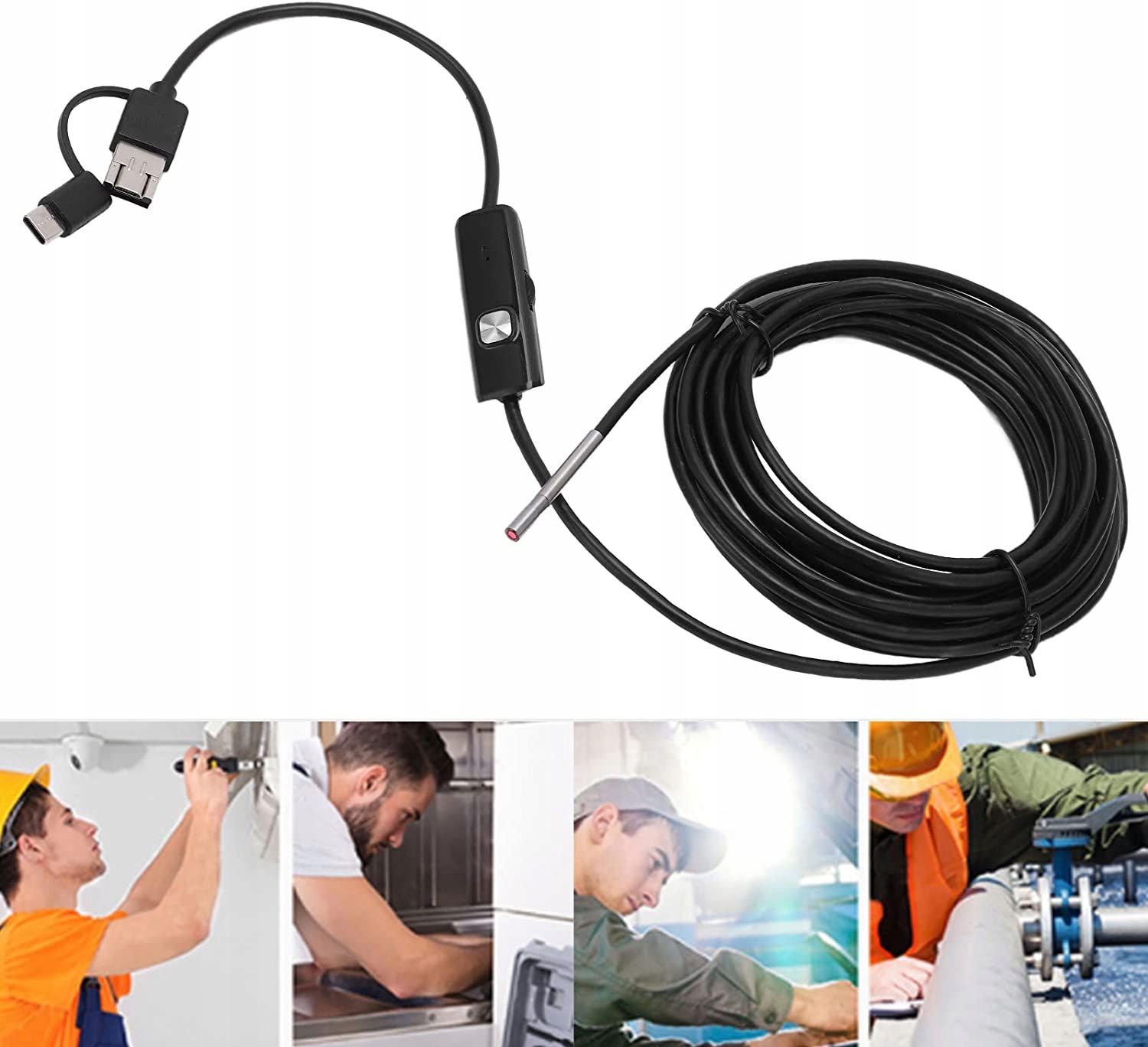 продукт виготовлений з високоякісного матеріалу ABS, який стійкий до корозії і стійкості до окислення. Мобільний телефон mona atwo відремонтує та підтримає один rk, що дуже зручно, і moe задовольнить ваші потреби. лінза 39 мм водонепроникність IP67 6 світлодіодів Мона регулюється за допомогою кнопки затемнення на блоці управленияболее в міру необхідності. Цей ендоскоп зменшить експозицію зображення кольоровим ефектом у темряві або сабімі без спотворень. Цей продукт широко використовується в обслуговуванні автомобільних двигунів, технічне обслуговування електричних дренажних труб, інспекційних машин і візуального контролю недостатніх областей.