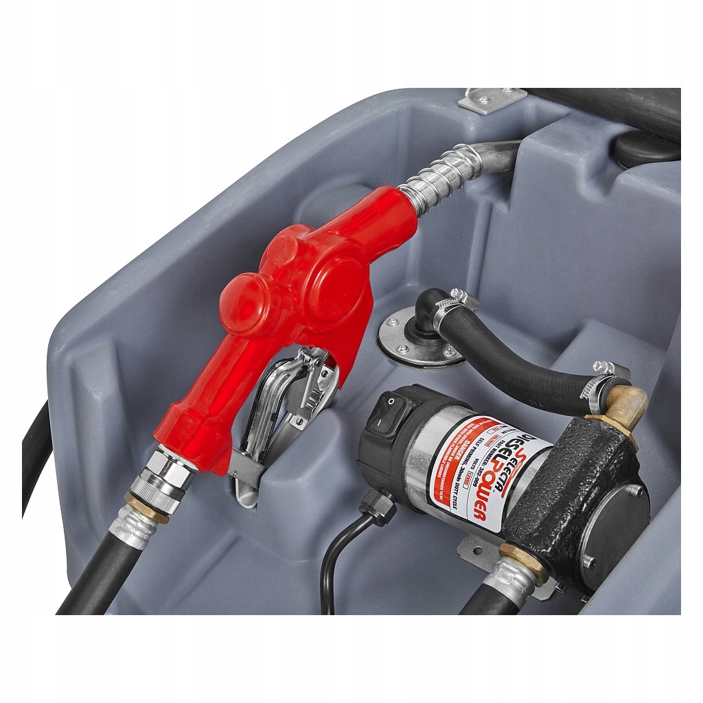 самовсасывающий крыльчатый насос имеет максимальную производительность порядка 40 литров в минуту для быстрого пополнения топлива. Подающий шланг измеряет четыре метра и, наконец, оснащен дозирующим пистолетом. Питание осуществляется через прилагаемый к комплекту кабель с зажимами для аккумулятора (крокодил). Питание от аккумулятора 12 В.