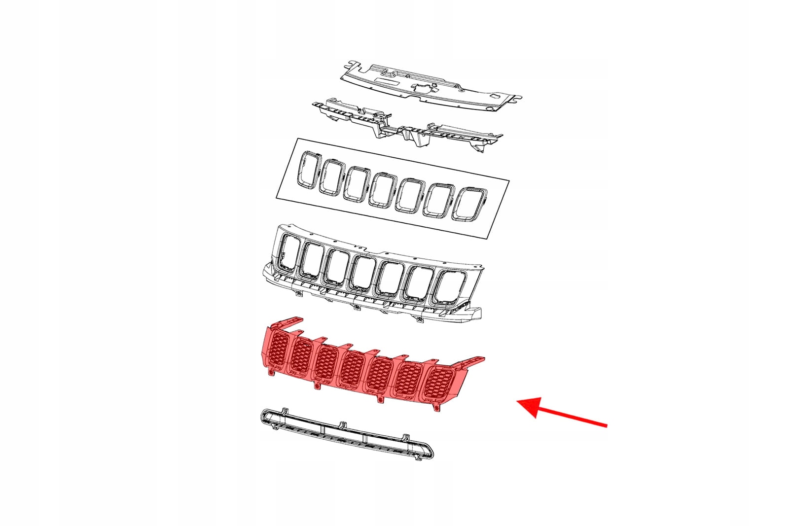 JEEP COMPASS II MP 2017-2020 ПЕРЕД ПІДНЯТОЮ РЕШІТКИ ВСТАВКА ЧОРНА СОТА 4010170340AB 5UP86RXFAB