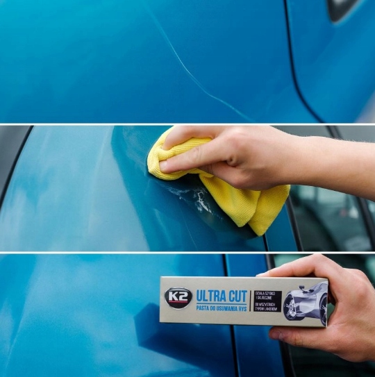 K2 Ultra Cut < /B > - це легка абразивна паста для видалення подряпин, подряпин і дефектів лаку. Відмінно розгладжує поверхню. Ефективно працює на всіх типах і кольорах лаків - традиційних і металізованих.е>
