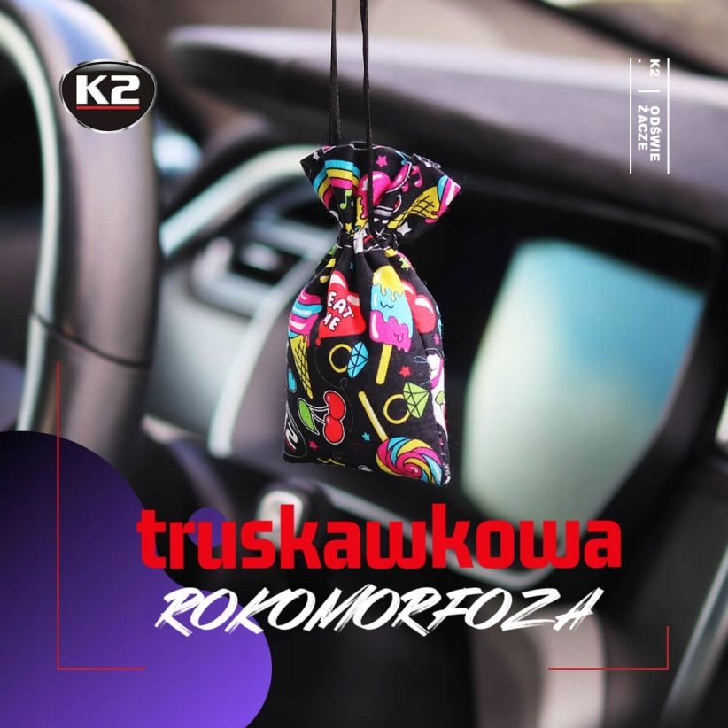K2 ROKO FUN це освіжувач повітря в сумці з унікальною графікою. Бавовняний мішечок потішить вас і ваших пасажирів. Кожен з 6 освіжаючих ароматів дозволить вам відчути себе особливим, а барвистий графічний дизайн підніме вам позитивний настрій.