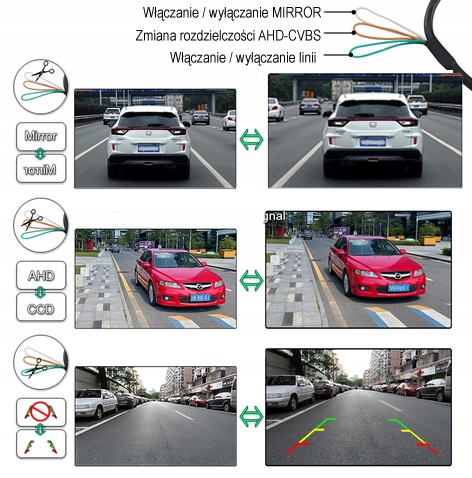 камера стійка до атмосферних впливів,має дозвіл 1920x1080 px. і лінії, що позначають відстань від перешкоди, а також функції Mirror.Камера водонепроникна, стійка до атмосферних впливів, має скляний об'єктив і кут огляду 170st.