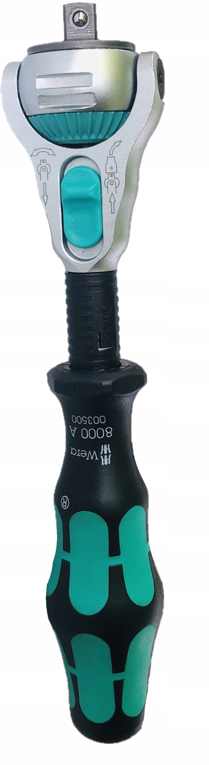 конструкція з власною вагою інструменту і зручна поворотна втулка дозволяють швидко повертати поворотна головка храповика, кнопка спрацьовування і перемикач перемикання напрямку роботи механізм храповика з дрібними зубами дозволяє отримати кут роботи всього 5°