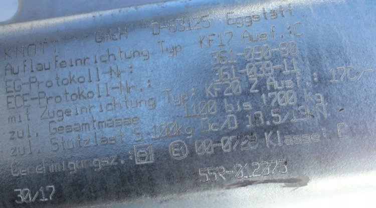 предметом продажу є новий оригінальний рейдовий пристрій kf17 a відомої фірми KNOTT. Пристрій призначений для причепів з дишлом типу "V". Гальмо має Зчіпний пристрій типу K20B з діаметром гака 50 мм. допустима Загальна вага причепа для гальма становить 900-1700 кг.
