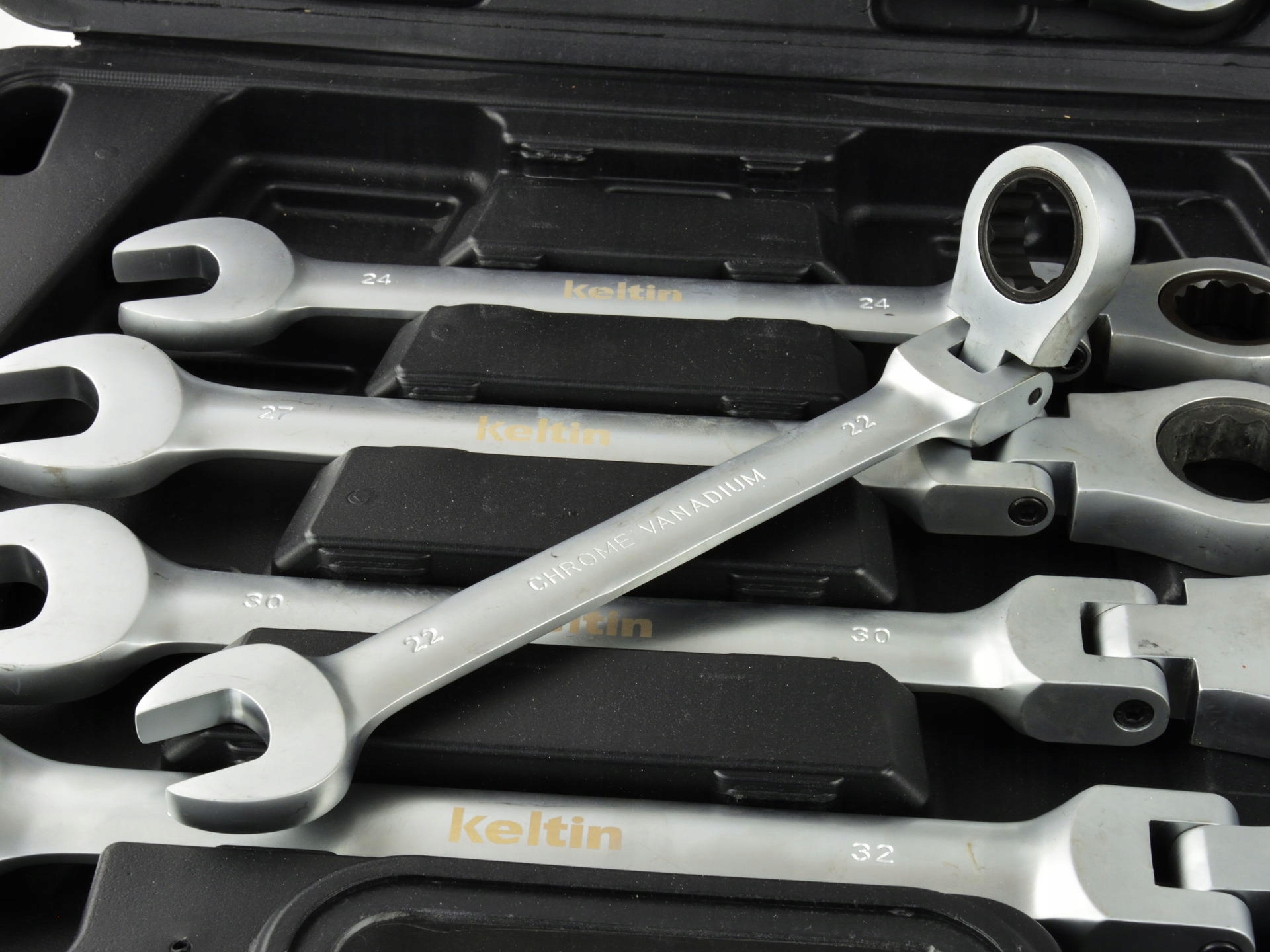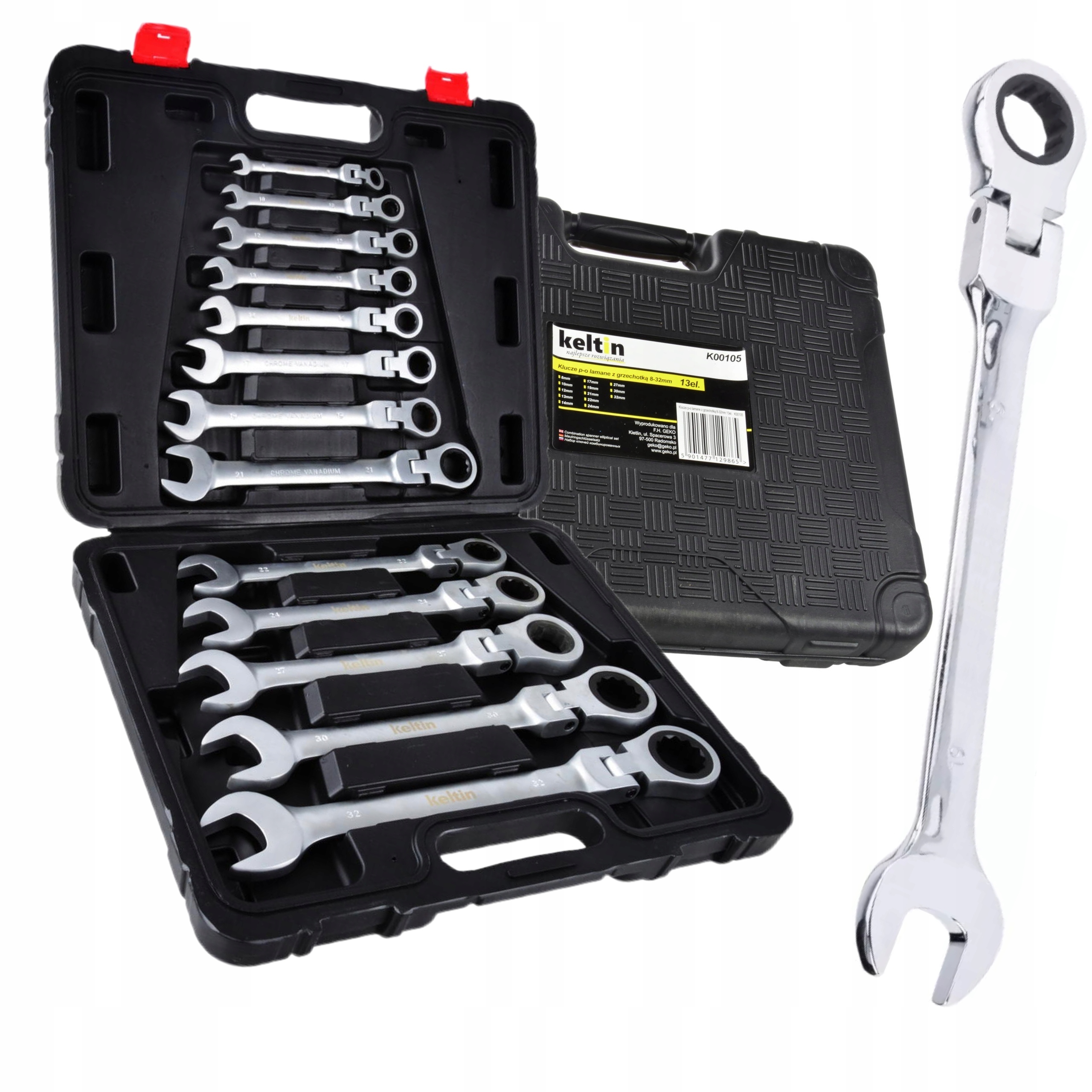 Набір ключів ріжкових з тріскачкою (72 зуба) 8-32мм з міцної хромованадієвої сталі (CrV). Вони будуть використовуватися як в професійних автомобільних майстернях, так і в домашньому гаражі. Ключі поміщені в зручний пластиковий футляр.