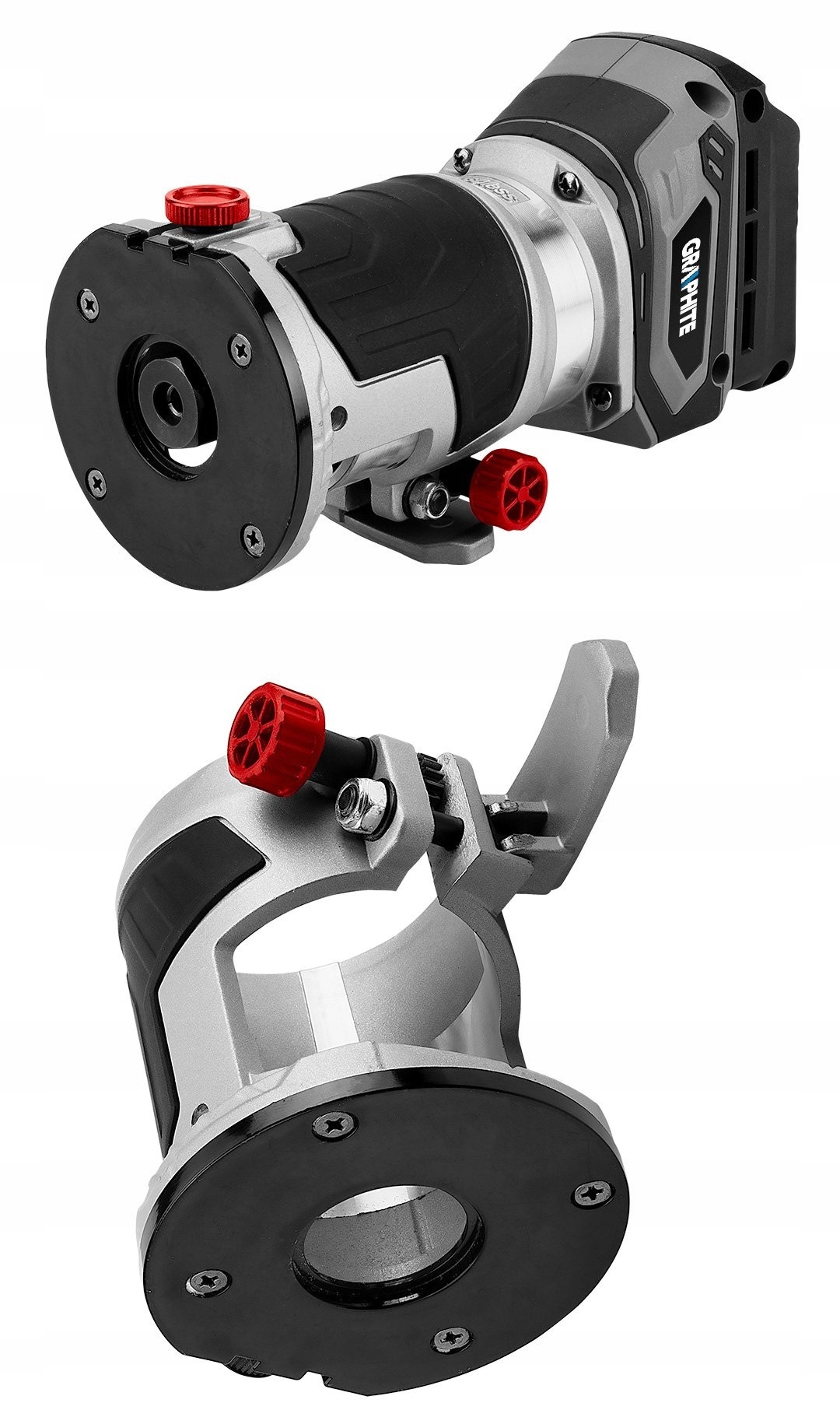 Фрезерний верстат оснащений функціями глибини фрезерування , блокування шпинделя та блокування глибини фрезерування. Прилад GRAPHITE має практичне світлодіодне робоче освітлення та стійку алюмінієву ніжку. Підставка зручно знімається і одягається.