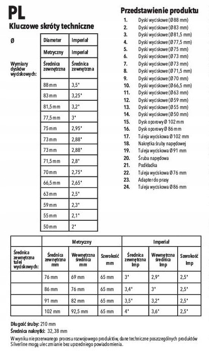 - 4 x зовнішні фланці ( зовнішній розмір ) 76, 86, 92 і 101 мм