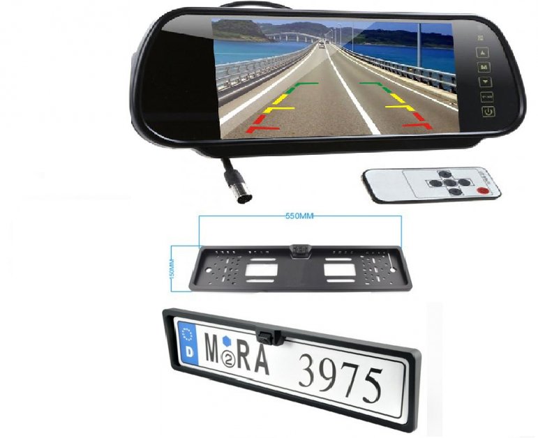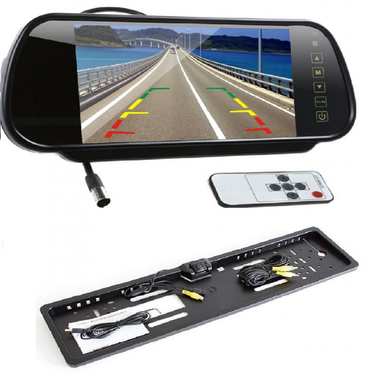 7-дюймовий діагональний дзеркальний монітор для установки в якості накладення на оригінальне дзеркало заднього виду з двома відеовходами (два відео-канали), можливість підключення двох пристроїв.
