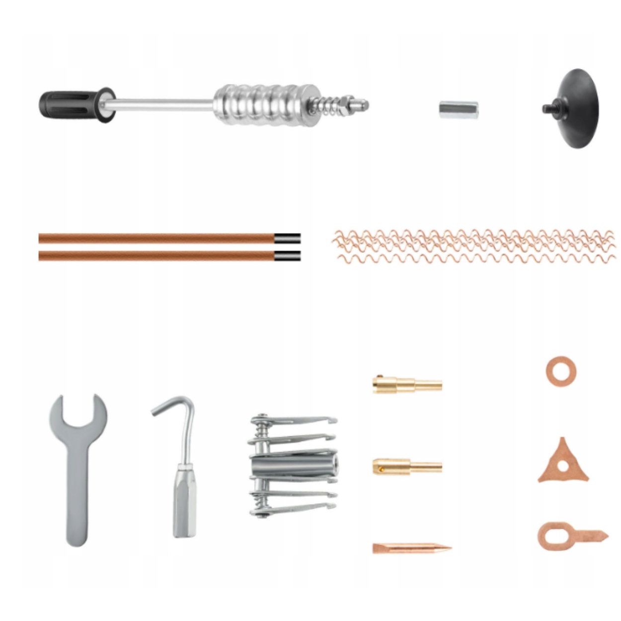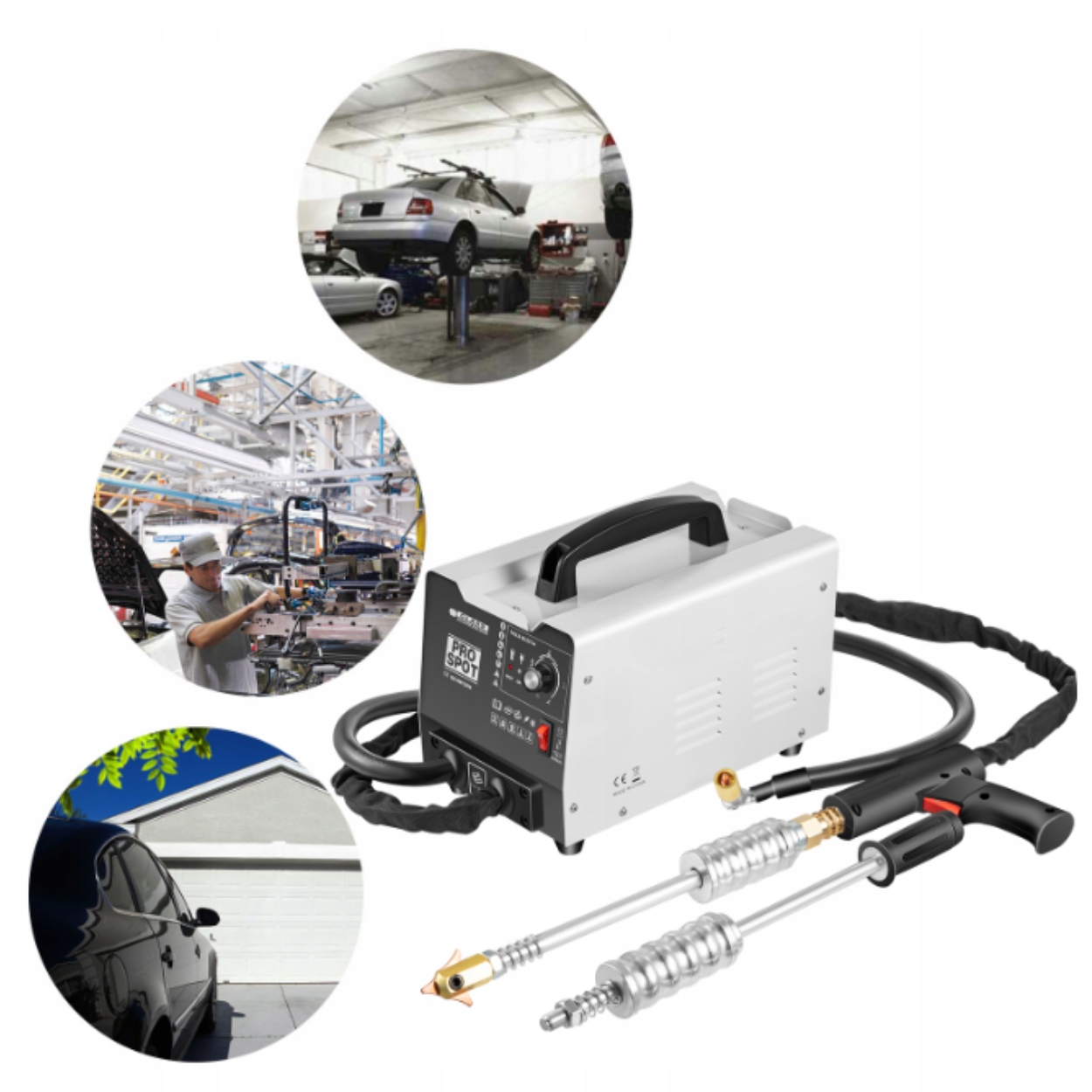 Набір апарата для точкового зварювання містить аксесуари, які зберігаються в коробці з інструментами, які допомагають вирішити типові проблеми з вм’ятинами автомобіля в різних режимах зварювання.