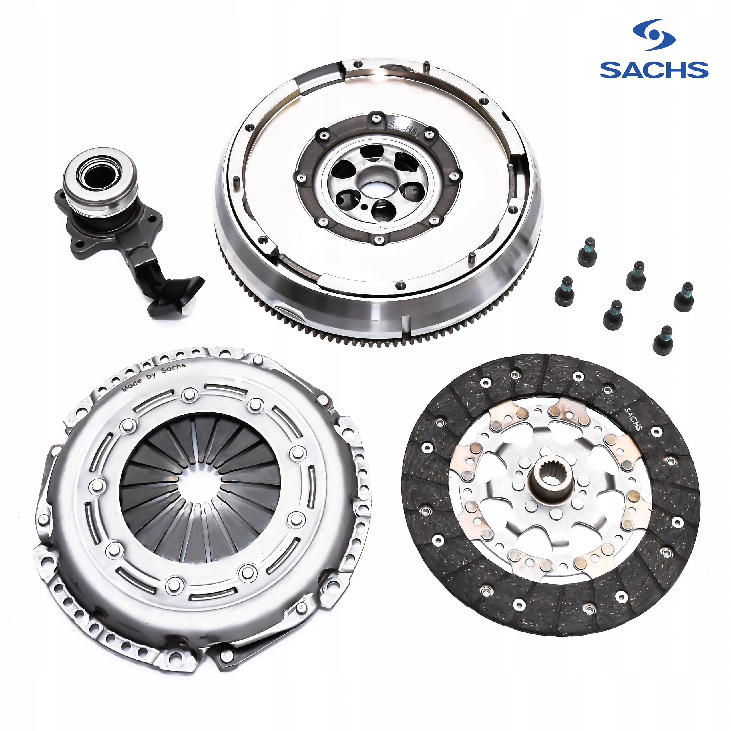 наступний комплект включає в себе диск зчеплення, притискну силу і центральну муфту. Центральна муфта-це часто недооцінений елемент, який має вирішальне значення для правильної роботи муфти. Він поєднує в собі два елементи – упорний підшипник і гідравлічний циліндр, що робить конструкцію трансмісії більш компактною. CSC (concentric Slave циліндр) відповідає за тиск на притискну силу під час від'єднання зчеплення, а також за попереднє придушення вібрації зчеплення і утримання його в правильному положенні. Диск зчеплення працює з коробкою передач і завдяки силі тертя передає потужність від маховика до коробки передач. Для цього також необхідна хороша притискна сила. Це рухомий елемент, який в залежності від положення педалі зчеплення "утримує" диск зчеплення на маховику або "відпускає" його, дозволяючи перемикати передачу. Двомасове колесо в автомобілі грає дуже важливу роль. Крім демпфування вібрації, він передає крутний момент все вище і вище в сучасних автомобілях. Крім того, він також гарантує тиху і рівну роботу двигуна на холостих обертах і захист двигуна і коробки передач.е>