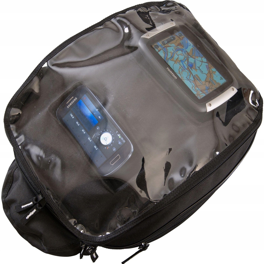 мотоциклетний Танкбаг утримуваний магнітвиготовлений з міцної тканини з гідрофобним покриттям < /B>, що робить його водонепроникним і міцним. має застебнуту блискавку, що дозволяє збільшити обсяг з 12 літрів до 20 літрів.