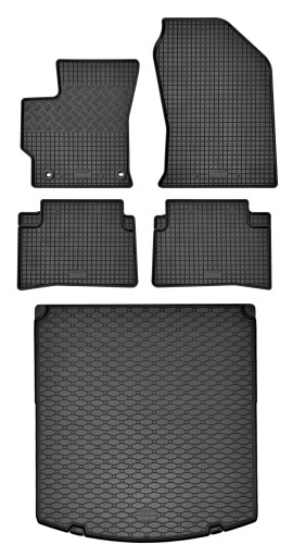 – Набір товарів, ідеально підібраних за формою підлоги та багажника. – Килимок багажника запобігає переміщенню речей. – Килимок дозволяє використовувати ручки в комбінованих версіях (видно на «реальних фотографіях») – Килимок не перешкоджає доступу до нижніх рівнів багажника (на відміну від килимків з високим краєм або органайзером) – Килимки мають кріпильні отвори для кліпс. – Килимки мають високу стійкість до стирання та посилені під п’ятами водія. – Продукти не мають запаху. – вага набору: приблизно 7 кг.