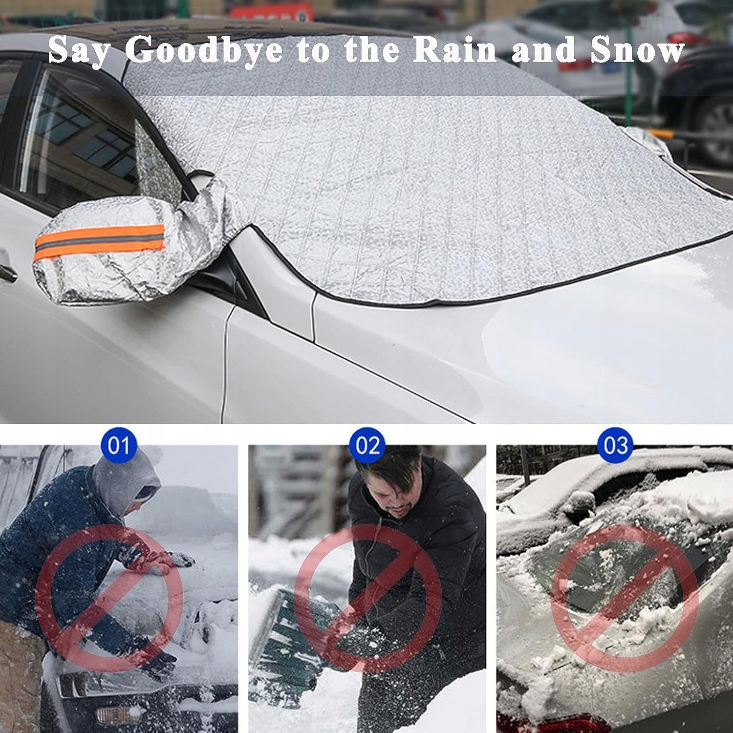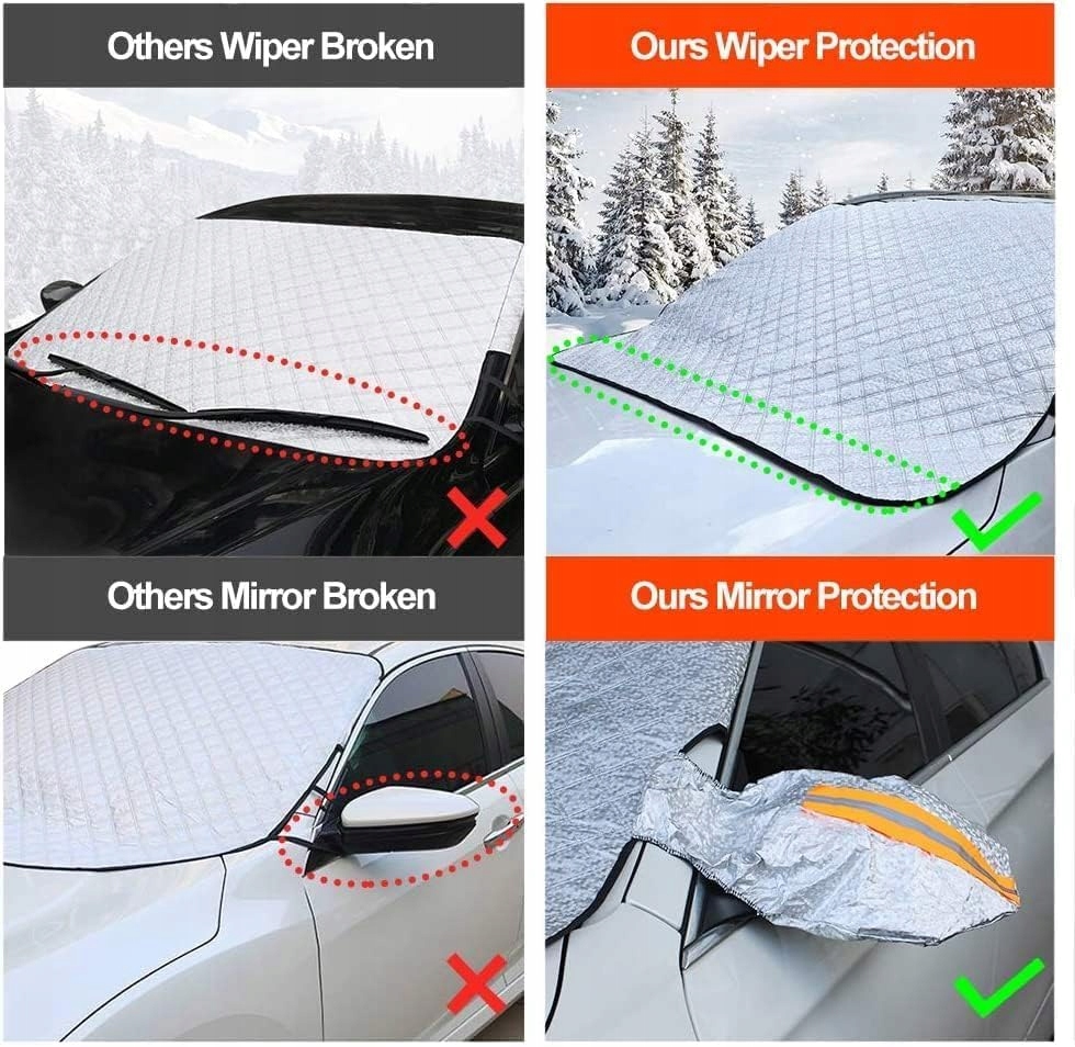 Посилений 4-шаровий козирок автомобільного лобового скла складається з 4 шарів алюмінієвої фольги PEVA, водонепроникної, вогнестійкої, світловідбиваючої бавовни, Spunlace, снігостійкого, незамерзаючого, бавовняного композиту, ефективно запобігає проникненню надмірної температури авто, підкладка флізелін, зносостійка, захищає авто. Надійно захищає скло і фарбу автомобіля від подряпин і пошкоджень. Економія часу вранці Люк автомобіля запобігає утворенню інею, снігу та льоду на лобовому склі. Це, безсумнівно, скорочує час, який ви проводите вранці, знімаючи лід або сніг. Зніміть кришку лобового скла та просто очистіть лобове скло. Після очищення кришку лобового скла автомобіля можна зберігати для подальшого використання. Прозоре лобове скло автомобіля. Захист склоочисника покращує козирок лобового скла, він також відмінно захищає склоочисник і запобігає пошкодженню лобового скла від морозу взимку. Влітку затінення вікна автомобіля зменшує старіння склоочисників, спричинене ультрафіолетовим випромінюванням. Ефективний і простий монтаж, розмір 148 х 100 см, для захисту від морозного снігу взимку, одягати і знімати його можна всього за кілька секунд, вставивши клапан в двері і закривши двері. Накладка на лобове скло м'яка і складається, коли вона не потрібна, просто складіть її і покладіть в сумку і зберігайте в кутку автомобіля, що дуже практично і не займає багато місця. Може використовуватися цілий рік. Автомобільний чохол захищає від снігу, льоду та морозу. Влітку паркування автомобіля на сонці знижує підвищення температури всередині. Завдяки поєднанню матеріалів і конструкції лобове скло можна використовувати для багатьох інших цілей, наприклад, як ковдру для пікніка або килимок для йоги, ігровий килимок для немовлят або ковдру для вашого домашнього улюбленця.