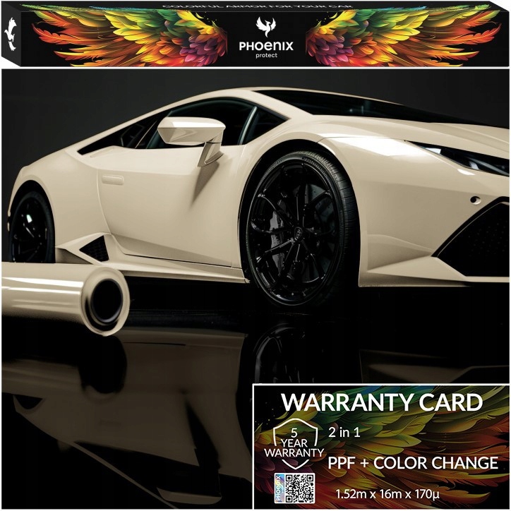 Плівка Phoenix Protect™ PPF — чудова захисна плівка PPF інтенсивних кольорів , доступна в різних відтінках . Завдяки чистій товщині 200 мікрон і надзвичайно міцному гідрофобному шару він ідеально захищає кузов автомобіля. Ідеально підходить для процесу зміни кольору кузова. Має властивості саморегенерації.