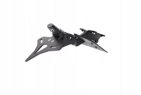 супер елегантний дизайн, який повністю інтегрується зі спортивними лініями мотоциклівзроблено методом ЧПУ з легкого авіаційного алюмінію і оброблено чорним порошковим покриттям.Кріплення пристосоване під оригінальні поворотники.В комплект входить світлодіодне підсвічування номерного знака.Не потребує будь-яких додаткових модифікацій