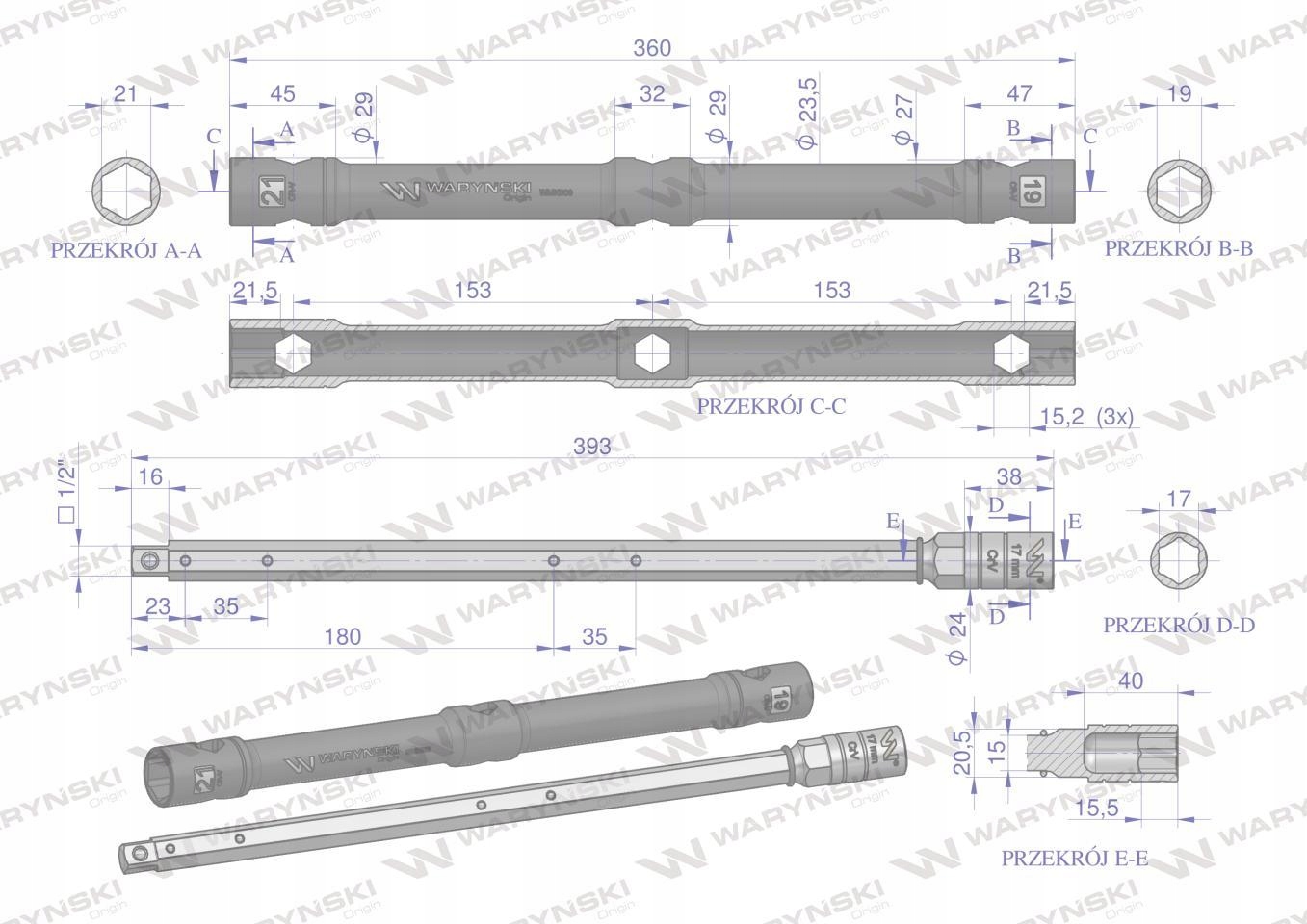 хрестоподібний ключ складаний 1/2 дюйма з вбудованими насадками 17, 19, 21 мм для коліс Warynski
