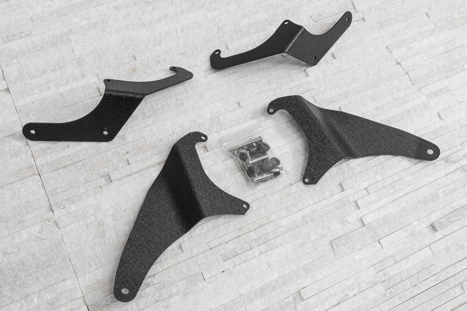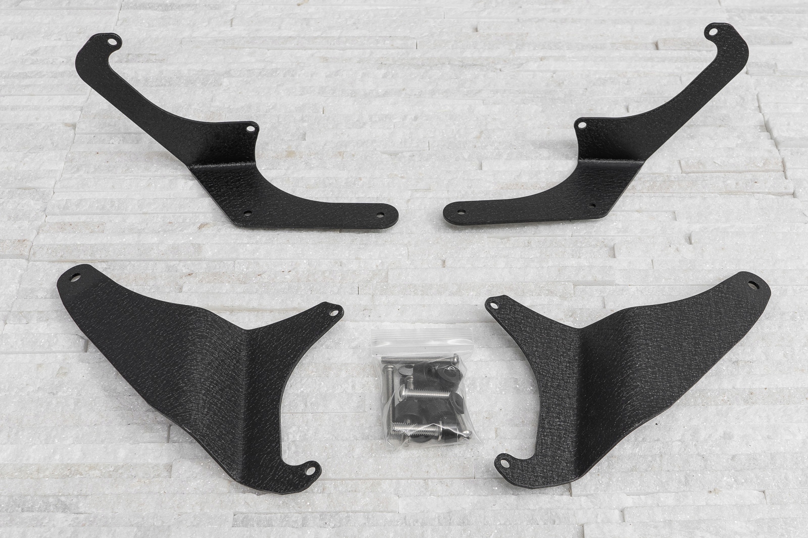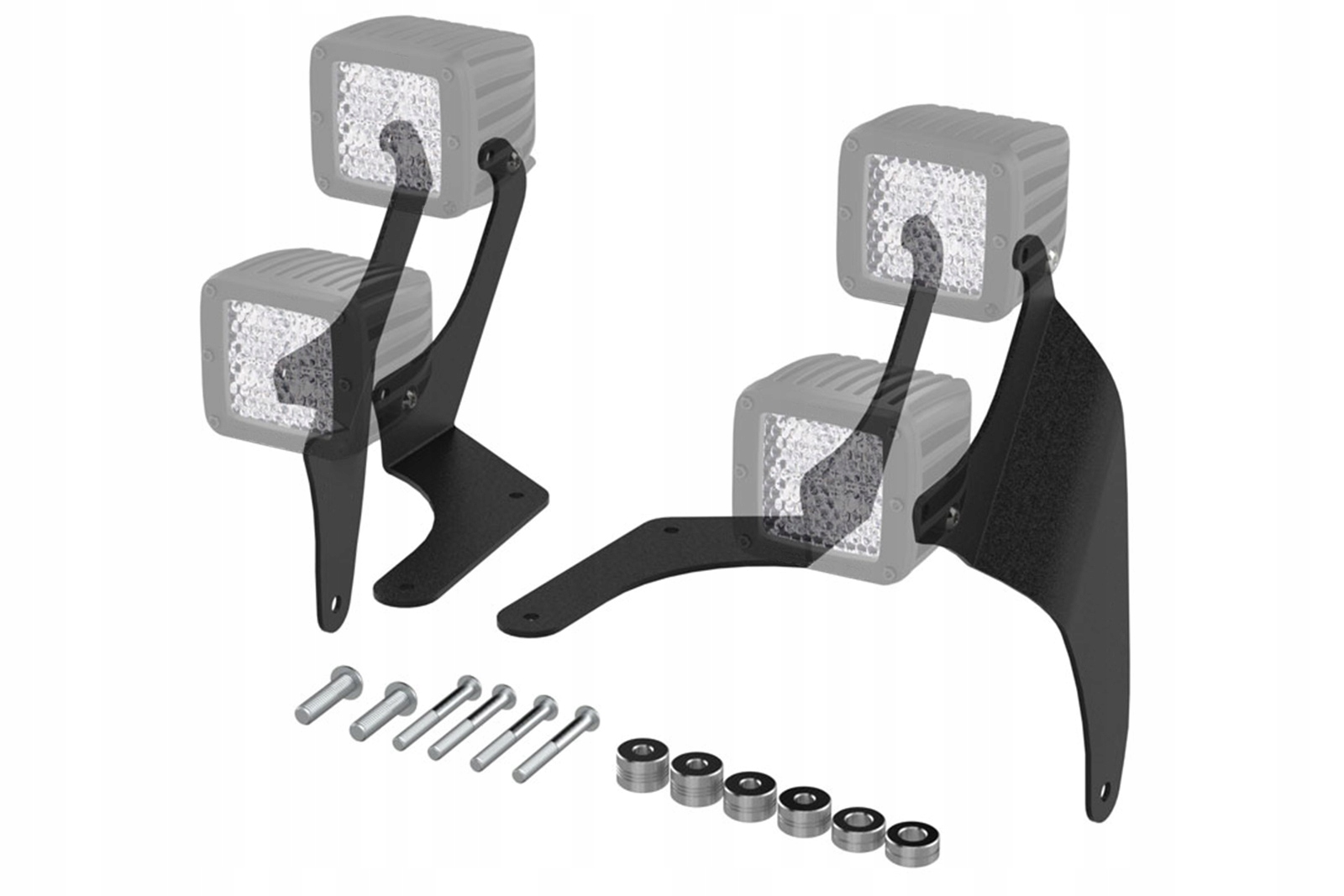 кріплення світлодіодних ліхтарів на передній стійці дозволяють встановлювати додаткове освітлення на автомобіль. Пропонований продукт дозволяє встановлювати до 4 світлодіодних ламп. Ручки виготовлені з міцної холоднокатаної сталі. Все було захищено двоступеневим процесом порошкового покриття з використанням епоксидного попереднього покриття, що створило міцну чорну структуру " TIGER textured ". Кріплення нагвинчуються на заводські отвори для кузова автомобіля - не вимагають свердління або модифікації автомобіля! е> <е> Комплект складається з чотирьох кріплень і кріплення.е>