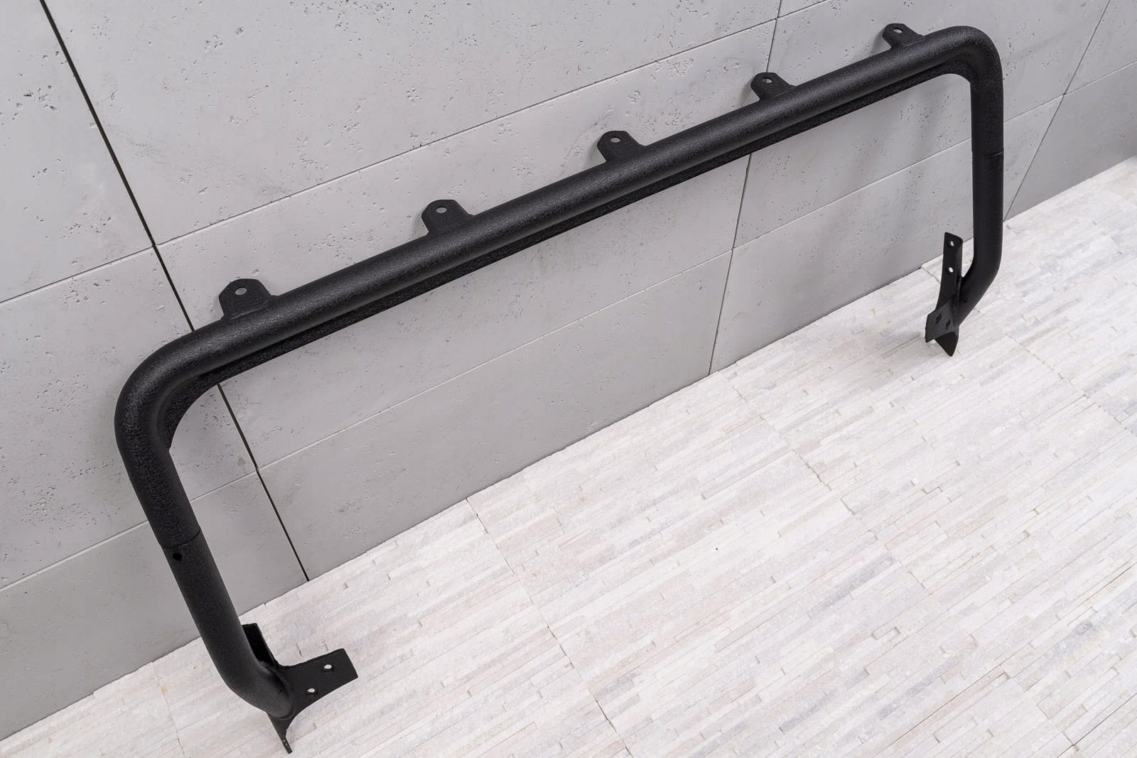 рама має 5 гачків, які вміщують 9 "галогенів або 50" горизонтальної світлодіодної панелі. Можливе регулювання положення встановлюваних ламп. Чудова майстерність і високоякісні матеріали забезпечують стабільну, міцну, але відповідну конструкцію для додаткового освітлення. Рама захищена двоступеневим процесом порошкового покриття з використанням епоксидного попереднього покриття-завдяки цим процесам елемент захищений міцною чорною структурою "TIGER textured", стійкою до подряпин і атмосферних впливів. Виріб кріпиться болтами, не вимагає свердління або додаткових модифікацій. е>