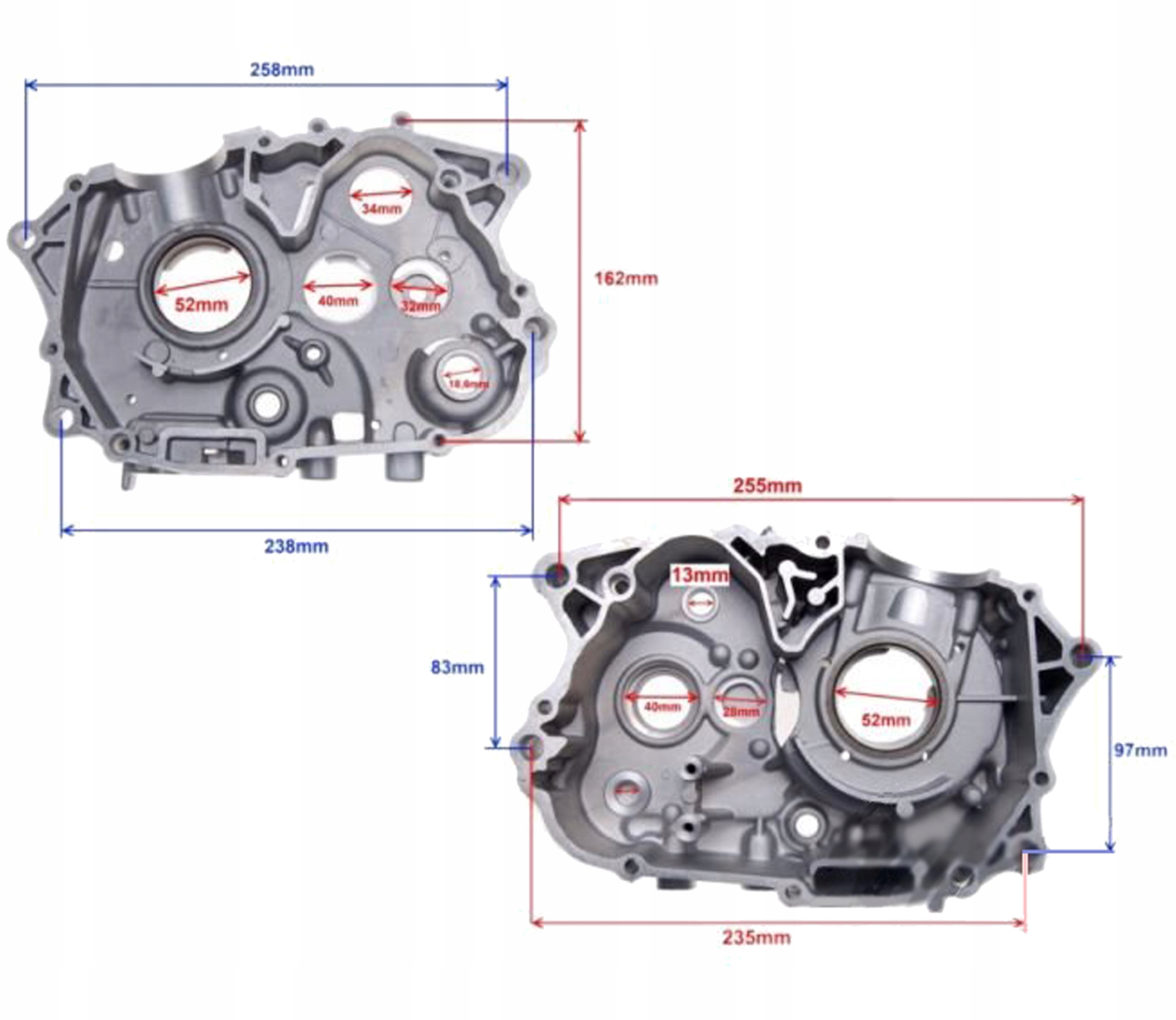опис: картери двигуна, корпус для ROMET ZETKA 4T 50ccm. ПРАВА + ЛІВА СТОРОНА. Виготовлений з алюмінію