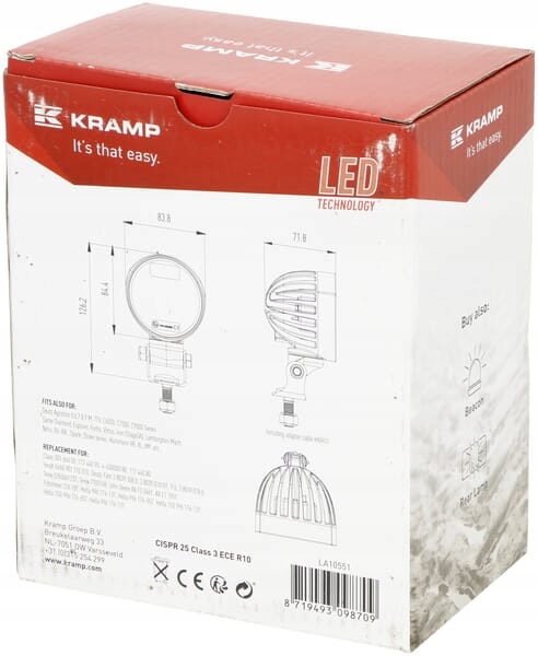 світлодіодний робочий світильник, круглий 40W 4000Lm 10 / 30V з вилкою AMP 4 LED 360° Kramp