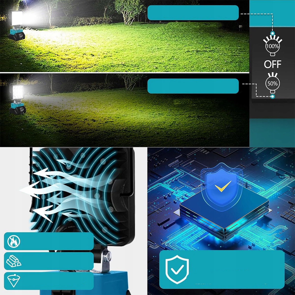 Цей перезаряджуваний світлодіодний робочий ліхтар із потужністю 48 Вт забезпечує яскравість 2400–4800 люмен, ідеально підходить для різних робочих середовищ. Цей портативний світлодіодний робочий ліхтар можна повертати на 140°, щоб забезпечити точне освітлення, ідеальне для використання в майстернях і на будівельних майданчиках.