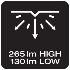 з двома функціями освітлення до 265 лм (високий), 130 лм (низький) і регульованим кутом 90 градусів він пропонує різні параметри налаштування для різних завдань.е>