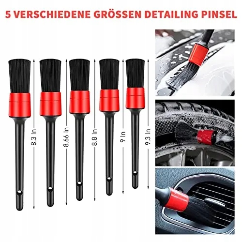 * 【5 розмірів щітка для чищення автомобіля】виготовлена з дикої свині, змішана з штучним волокном, дуже гнучка, не вицвітає легко. Щітка для чищення автомобіля досить м'яка для набору для чищення салону автомобіля, чутливих поверхонь і детальних робіт, таких як вентиляційні отвори, дисплеї, шкіряні сидіння, глянцеві поверхні. У той же час Автомобільна щітка досить жорстка, щоб легко витирати пил і відкладення, а також чистити зовні автомобіля, як для емблем, ободів.е>