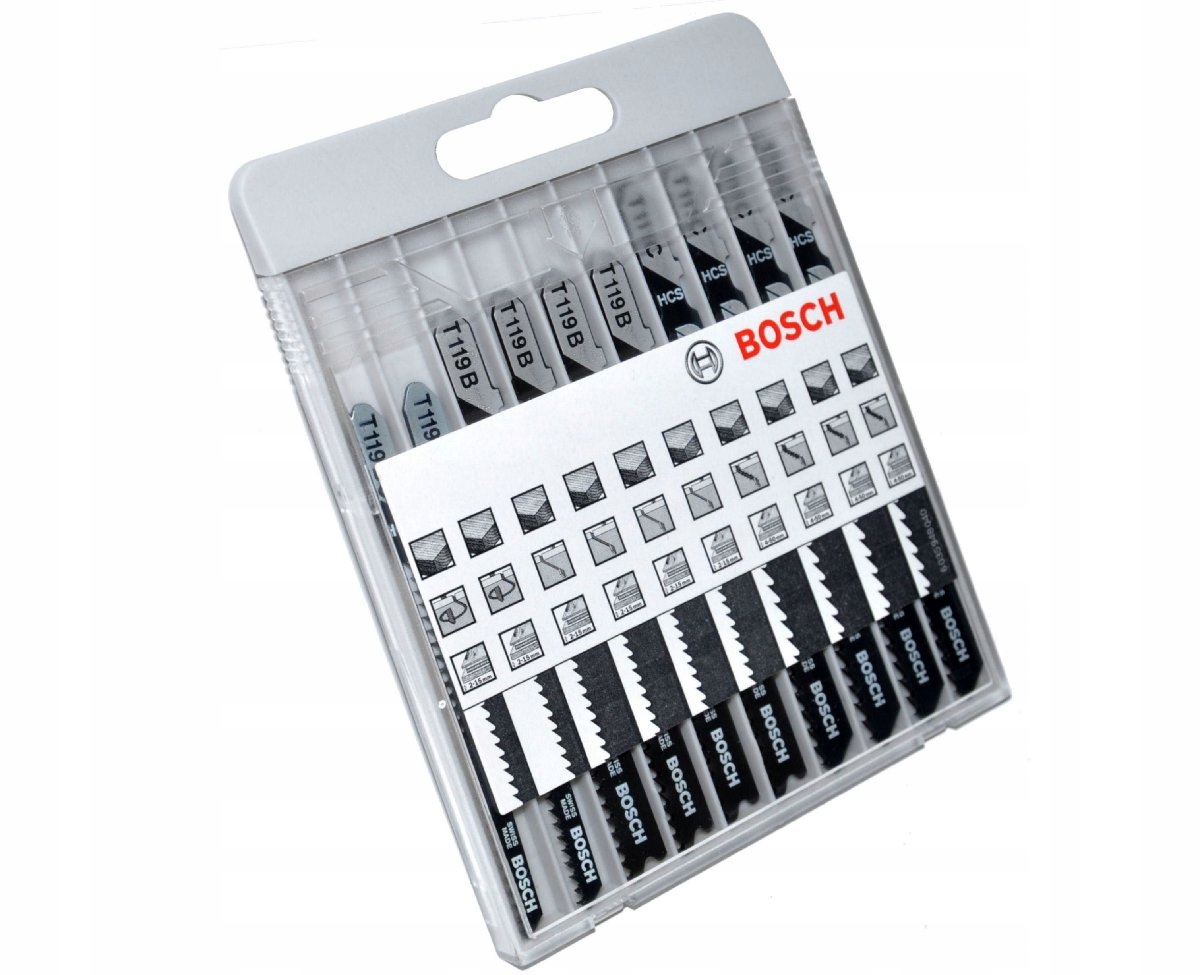 набір з 10 професійних пильних полотен BOSCH в спеціальній пластиковій касеті в оснащенні пропонованого лобзика.е>