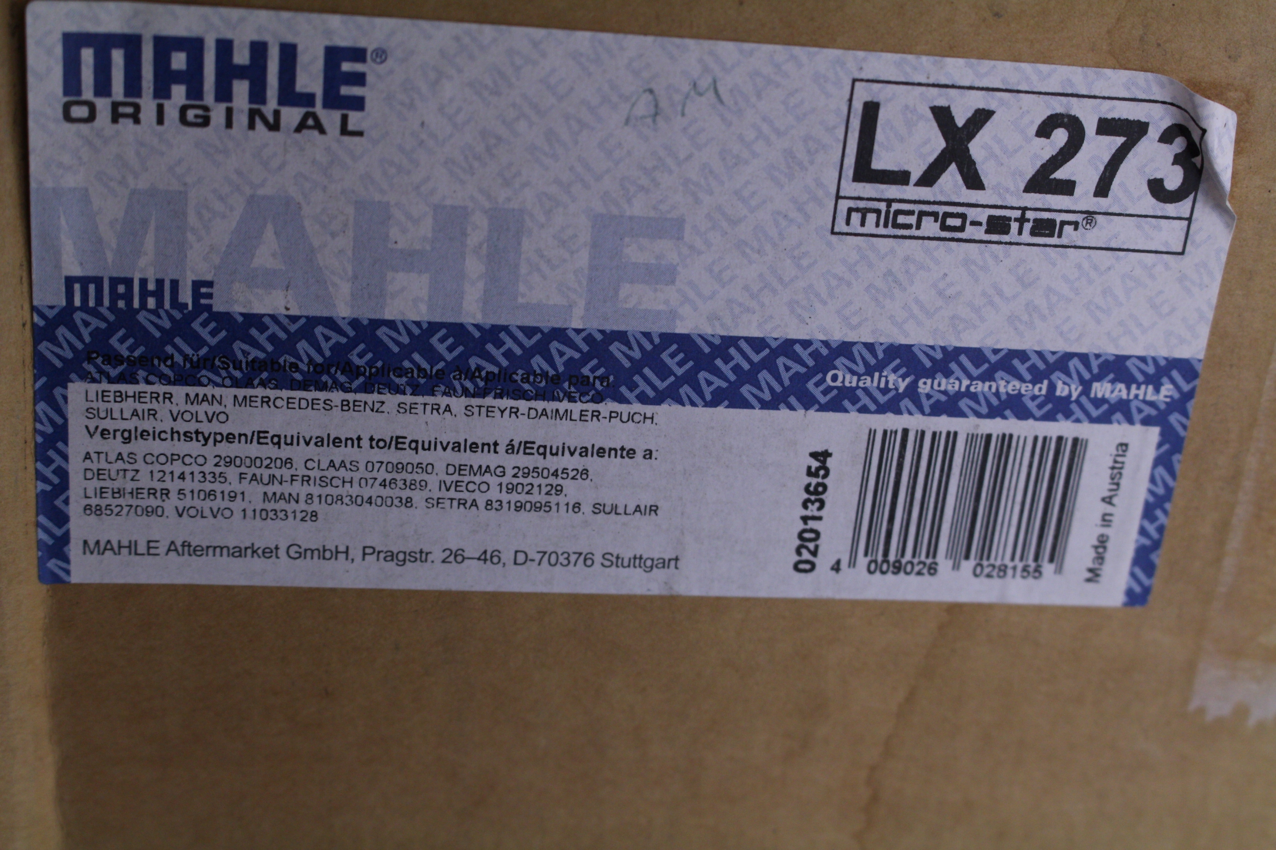 273 - ПОВІТРЯНИЙ ФІЛЬТР LX273 MAHLE MAN IVECO KAMAZ SETRA