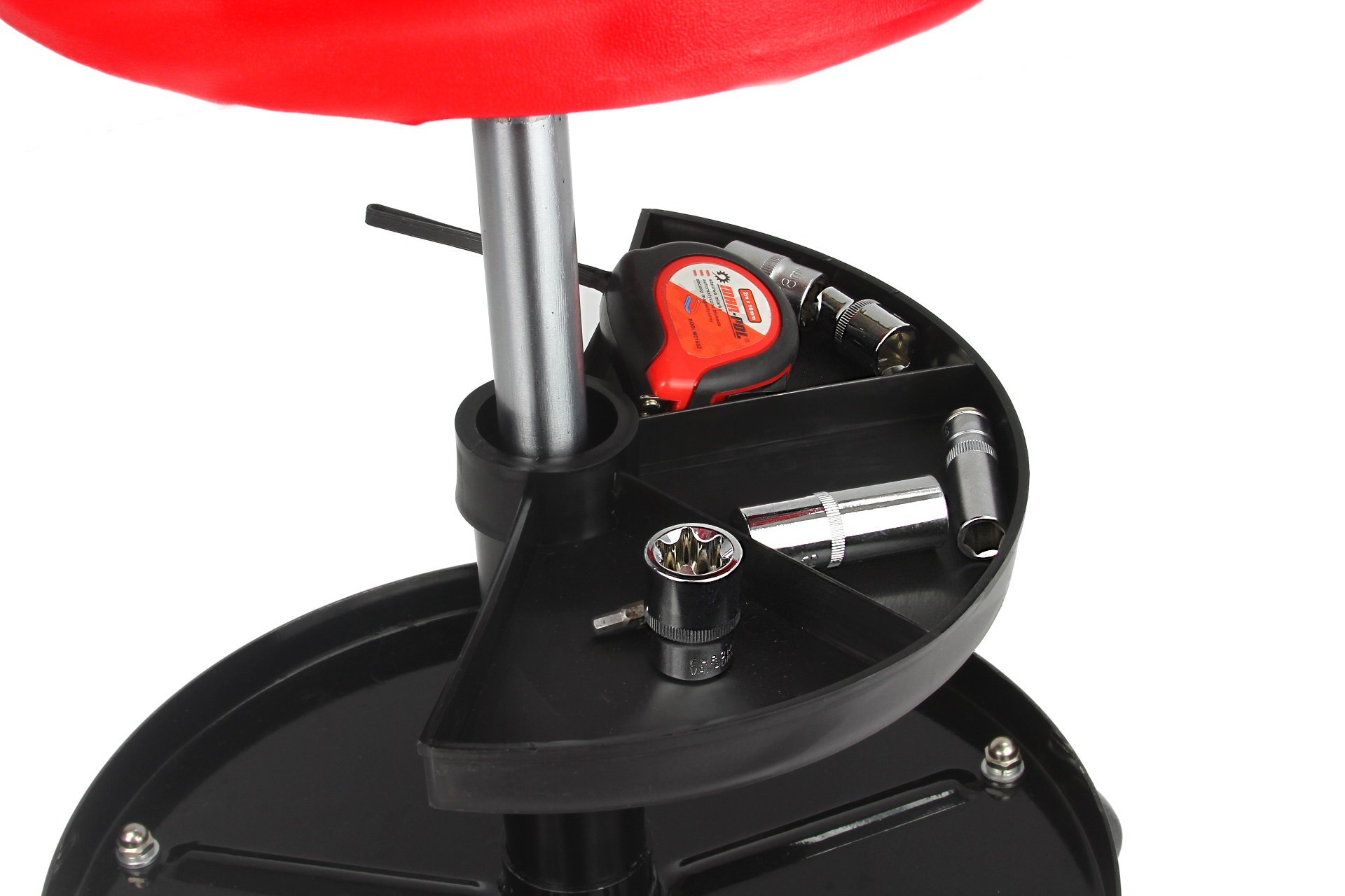 мягкое сиденье мастерская - стул имеет пневматическую регулировку высоты в диапазоне 400-520 мм и 4 полностью вращающихся колеса.