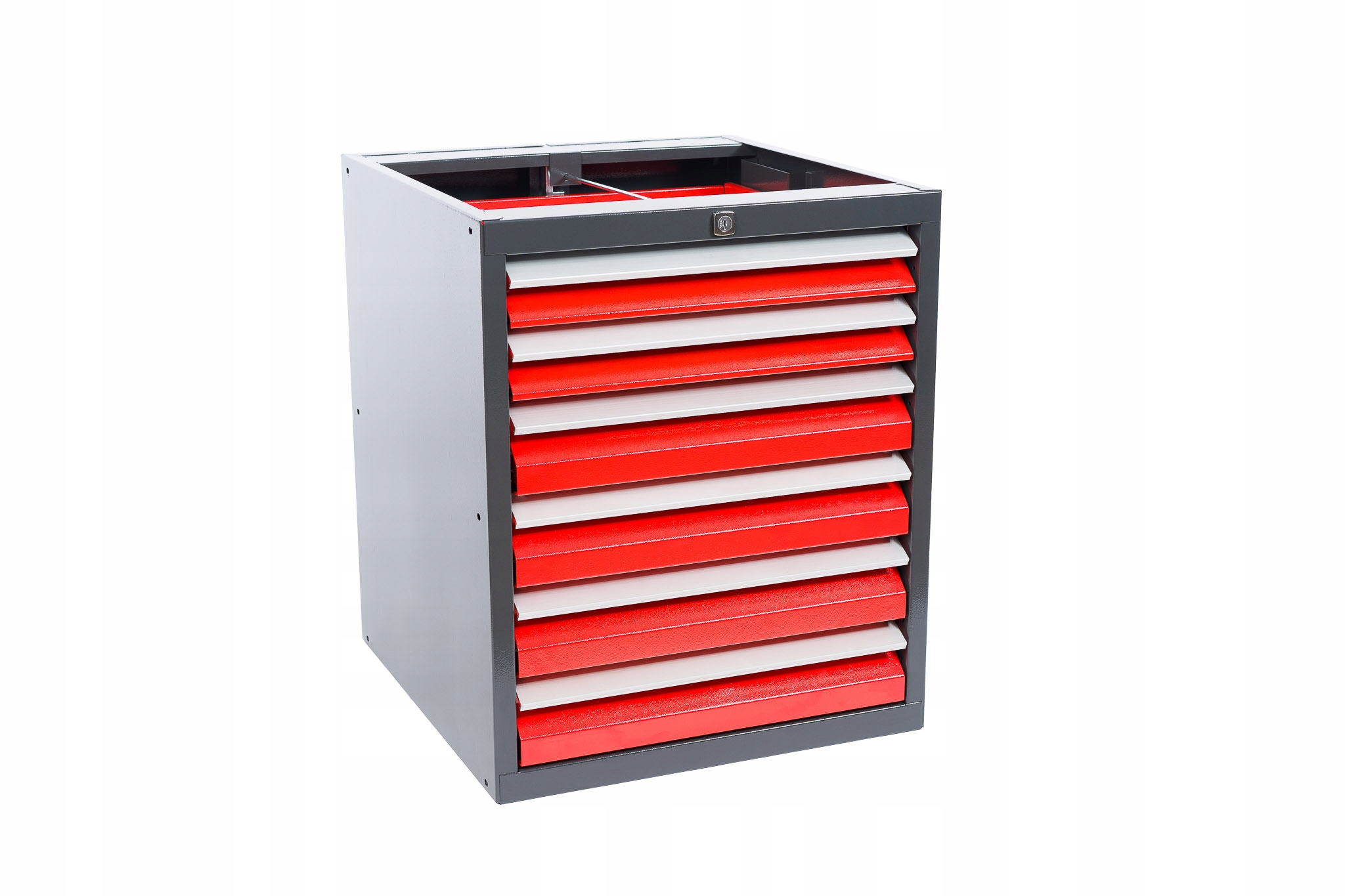 • цвет; корпус антрацитового цвета (фирменный цвет), фасады: красный-RAL 3020, ручки в цвете алюминий –RAL 9006