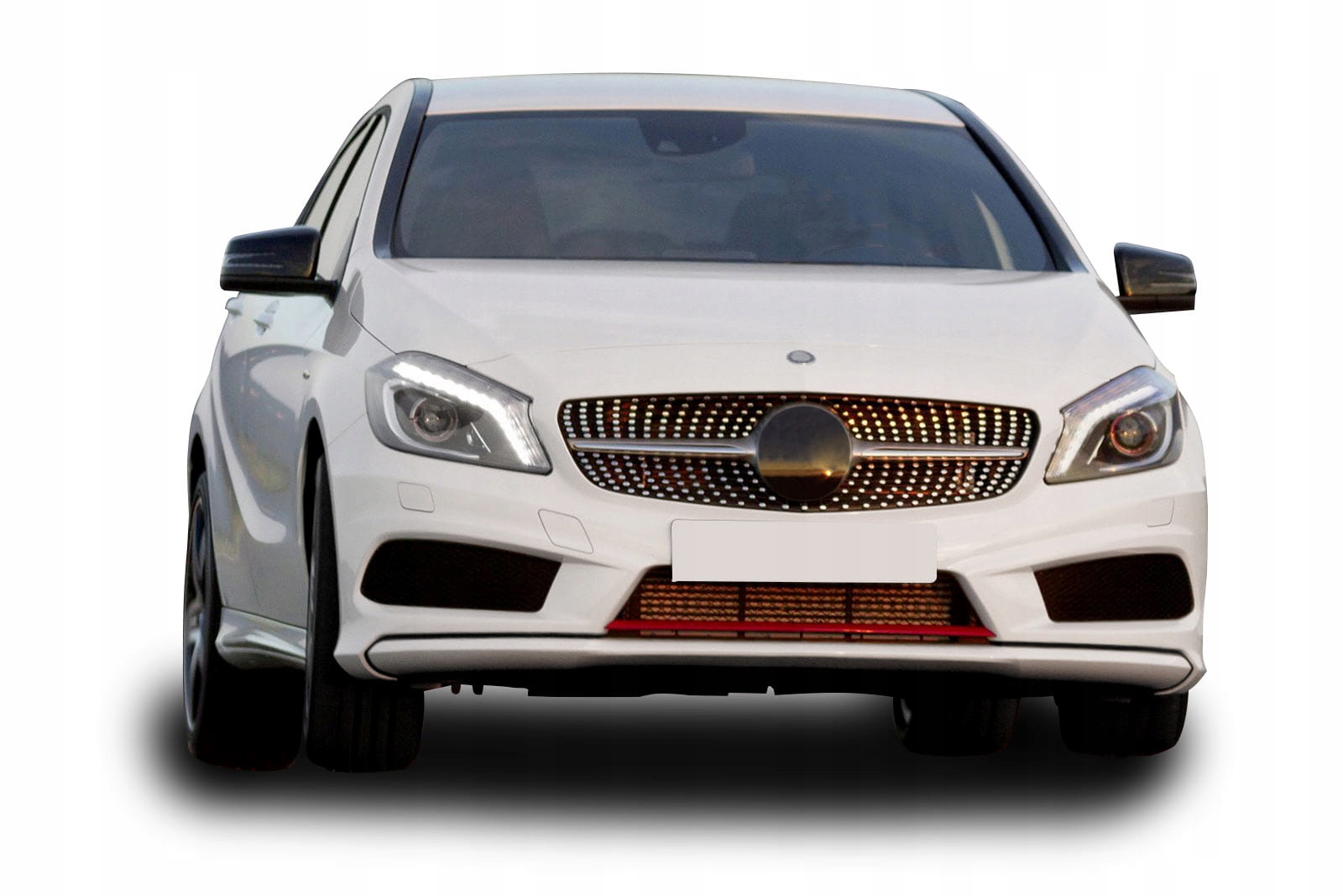Передня решітка, модель DIAMOND SILVER , призначена для MERCEDES A-CLASS (W176) 2012-2015 ДО ФЕЙСЛІФТИНГУ (ДЛЯ ВЕРСІЇ БЕЗ ЗАВОДСЬКОЇ КАМЕРИ). Спеціальна решітка була розроблена, щоб ідеально відповідати вишуканому дизайну моделі W176. Сітка гриля прикрашена сріблястими шпильками, які радіально поширюються з обох сторін елемента, надаючи йому вражаюче оригінальний стиль, характерний для найрозкішніших моделей. Вони заповнюють простір навколо знака MERCEDES, оточуючи його елегантною рамкою. Решітка DIAMOND дозволяє створити модний, сучасний стиль вашого автомобіля, підкресливши візуальні переваги А-класу. Виріб виготовлено з високоякісного ABS-пластику чорного кольору з хромованими елементами. Емблема MERCEDES не входить до комплекту. Гриль DIAMOND є запчастиною, встановлюється замість заводського гриля. Рекомендуємо професійний монтаж.