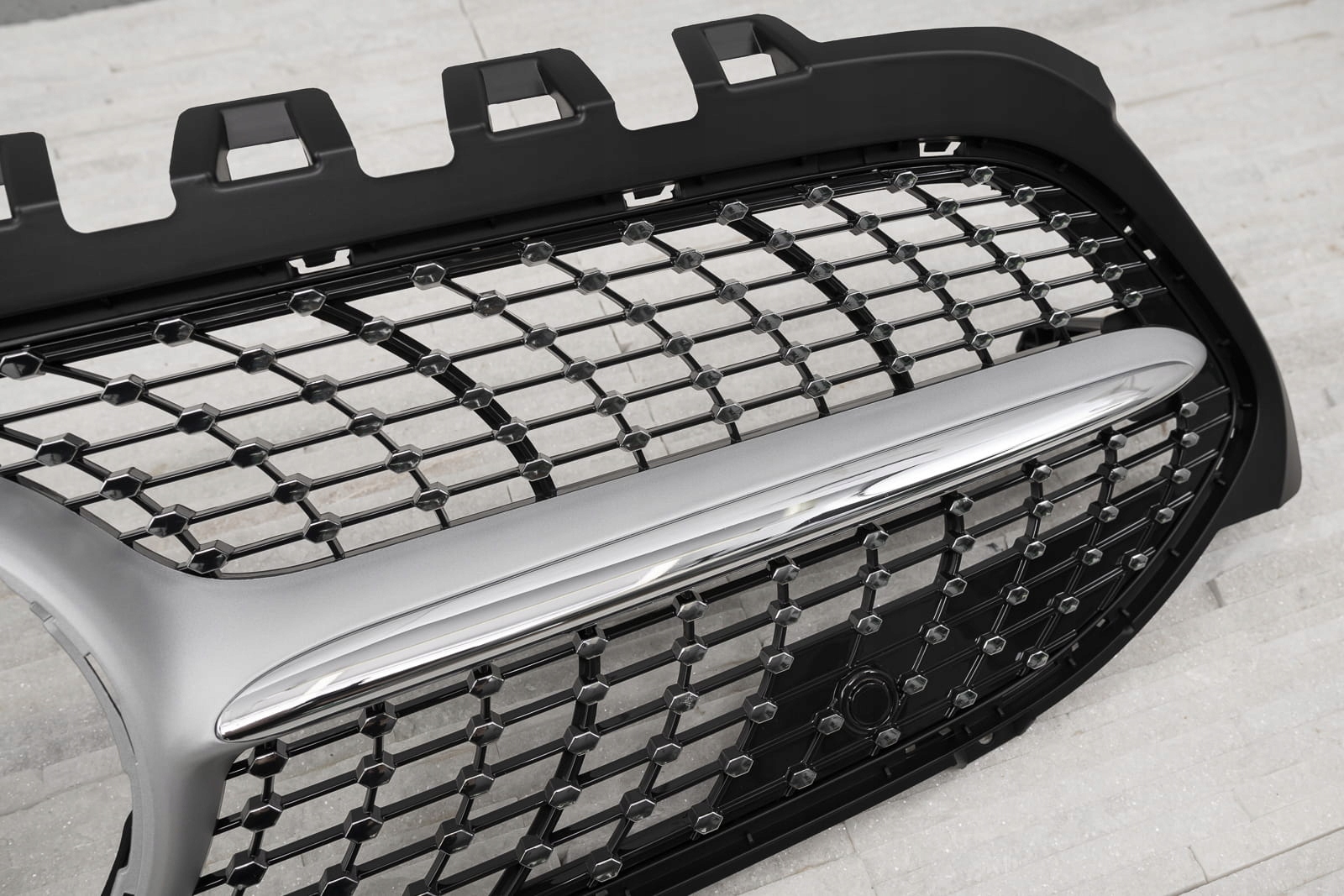 Спеціальна решітка була розроблена, щоб ідеально відповідати спортивному дизайну класу А. Сітка гриля прикрашена сріблястими шпильками, які подовжуються випромінюючи з обох сторін елемента, надаючи йому вражаюче оригінальний стиль, характерний для найрозкішніших моделей. Вони заповнюють простір навколо знака MERCEDES, оточуючи його елегантною рамкою. Решітка DIAMOND дозволяє створити модний, сучасний стиль вашого автомобіля, підкресливши його візуальні достоїнства.