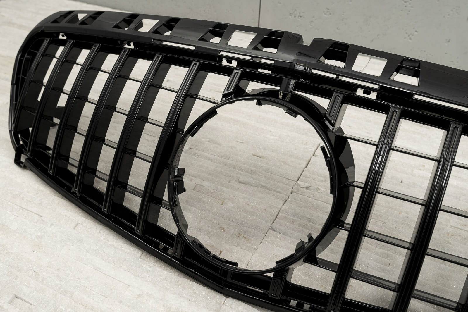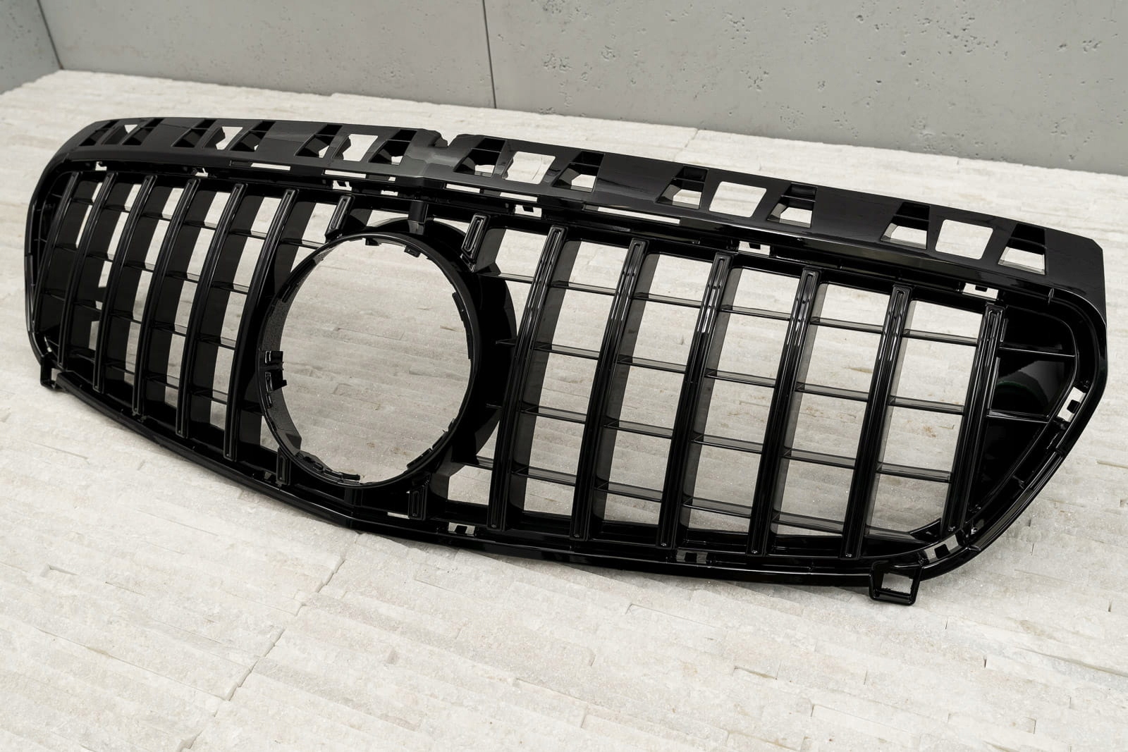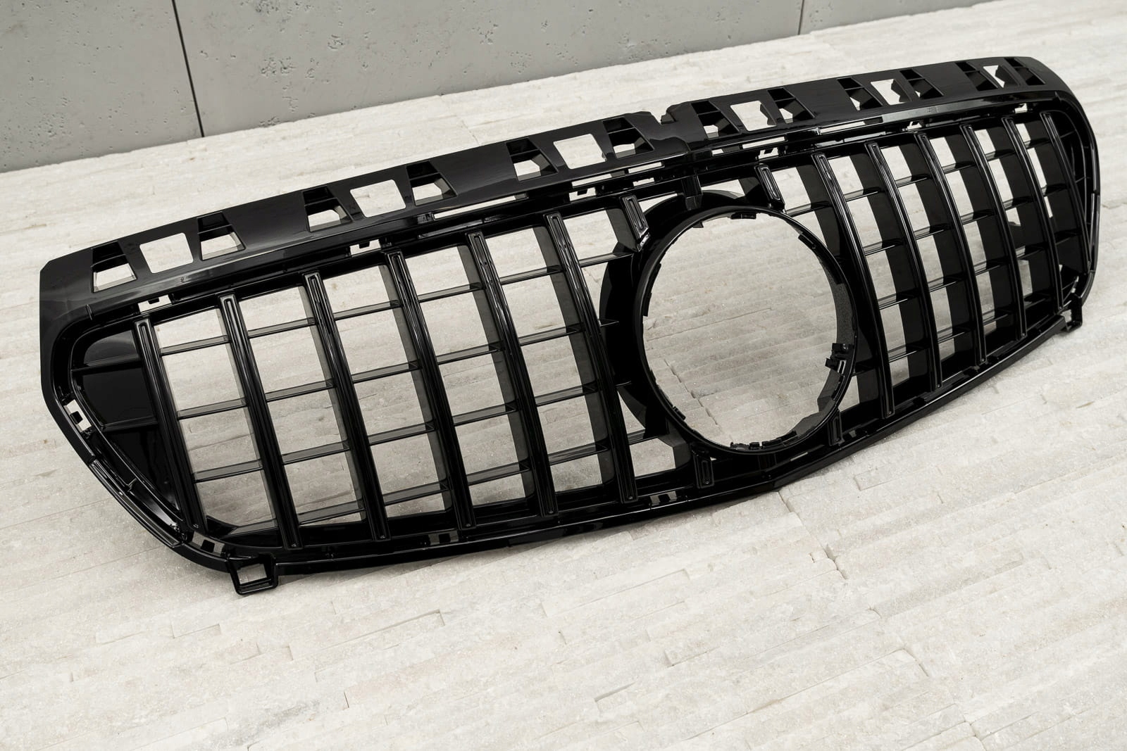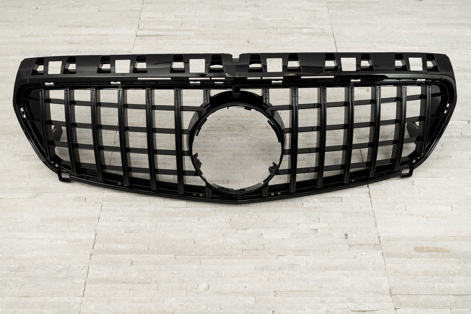 Передня решітка, модель GT / PANAMERICANA призначена для MERCEDES A-CLASS (W176) 2012-2015 (ВЕРСІЯ ДОПІДНЯТОГО). Спеціальна решітка виконана в стилі, типовому для автомобілів сегменту GT. Решітка радіатора прикрашена широкими чорними поперечинами, які неодмінно нагадують про респектабельні, потужні автомобілі топ-полиці. Елемент вражає своїм спортивним характером, ідеально поєднуючись із вражаючим дизайном Mercedes. Виріб виготовлено з високоякісного ABS-пластику чорного кольору. Емблема MERCEDES не входить до комплекту. Гриль GT є запчастиною, встановлюється замість заводського гриля. Рекомендуємо професійний монтаж.