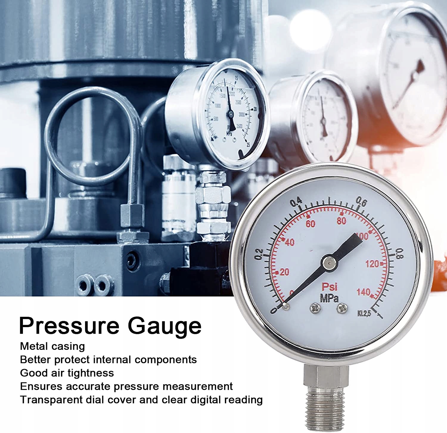 застосуйте металевий корпус, який може краще захищати внутрішні компоненти витримує і триває промисловий манометр має хорошу герметичність забезпечує точне вимірювання крововиливу цей манометр оснащений прозорим циферблатом і вираженим цифровим зчитуванням для зчитування Діапазон вимірювання від 010 МПа різьба манометра-M14x15 обуга монтау вертикального хорошої якості матеріал з нержавіючої сталі володіє стійкістю до корозії стійкий до високих температур стійкий до дуже низьких температур механічні та Висотні ватні диски