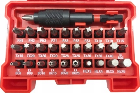 1 x PH1 /2 x PH2 / 1 X PH3 / 1 x PZ1 / 2 x PZ2 / 1 x PZ3 / 2 x TX10 / 2X TX15 / 3 x TX20 / 2X TX25 / 2X TX30 / 1 x tx40