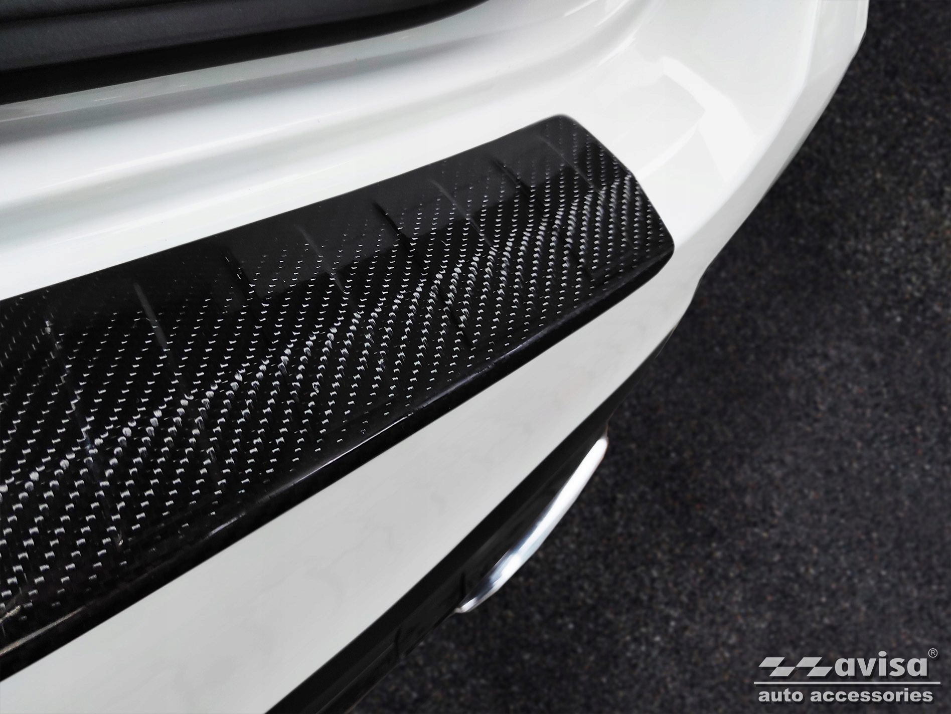 карбонова накладка на бампер , гарантує ідеальне прилягання до заднього бампера Вашого автомобіля. Це найкращий захист бампера для вашого автомобіля-захищає від пошкоджень, спричинених щоденним використанням автомобіля. Крім того, він також виконує декоративну функцію, оригінальний дизайн надає автомобілю елегантний вигляд. Карбонова накладка заднього бампера з рельєфними вставками. Carbon - матеріал в 5 разів міцніше сталі. Вуглець володіє винятковою втомною міцністю матеріалу-елементи, виготовлені з вуглецевого волокна, під тиском безперервної експлуатації міцні.