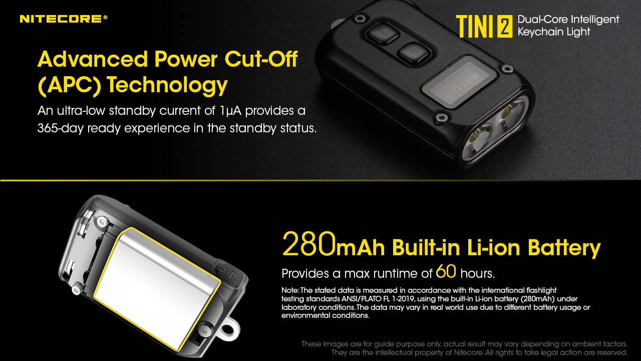 - варто відзначити, що Nitecore Tini 2 стійка до падіння з висоти до 1 м і водонепроникна на рівні IP54 .