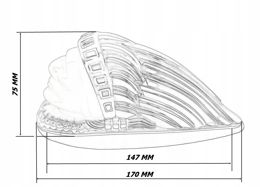 його закруглена основа і гумова накладка дозволяють ідеально вписатися в форму крила. Кріпиться болтами (відстань 147 мм).