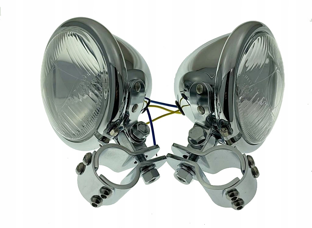 лампи і хомути хромовані. Вони оснащені лампами H3 12V 55W і синім індикатором, що сигналізує про світіння ламп. Вони мають європейське схвалення. Хомути дуже міцні, скручені з трьох частин. Комплект дозволяє встановлювати лампи на передній панелі і встановлювати кут падіння світла.
