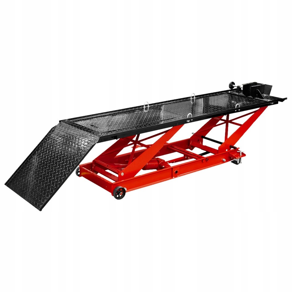 витяг з максимальним навантаженням до 450 кг. Рампа (650 x 680 мм) полегшує підйом транспортних засобів на платформу. З робочою поверхнею розміром 2060 x 550 мм у вас достатньо місця для ремонту і технічного обслуговування.