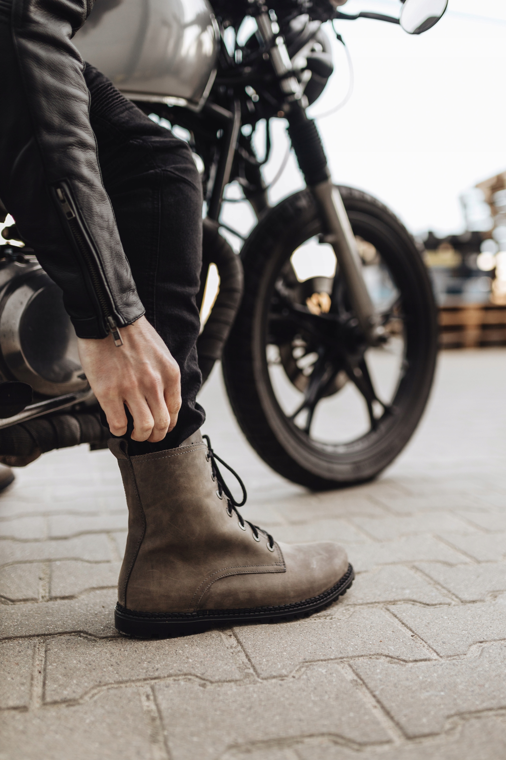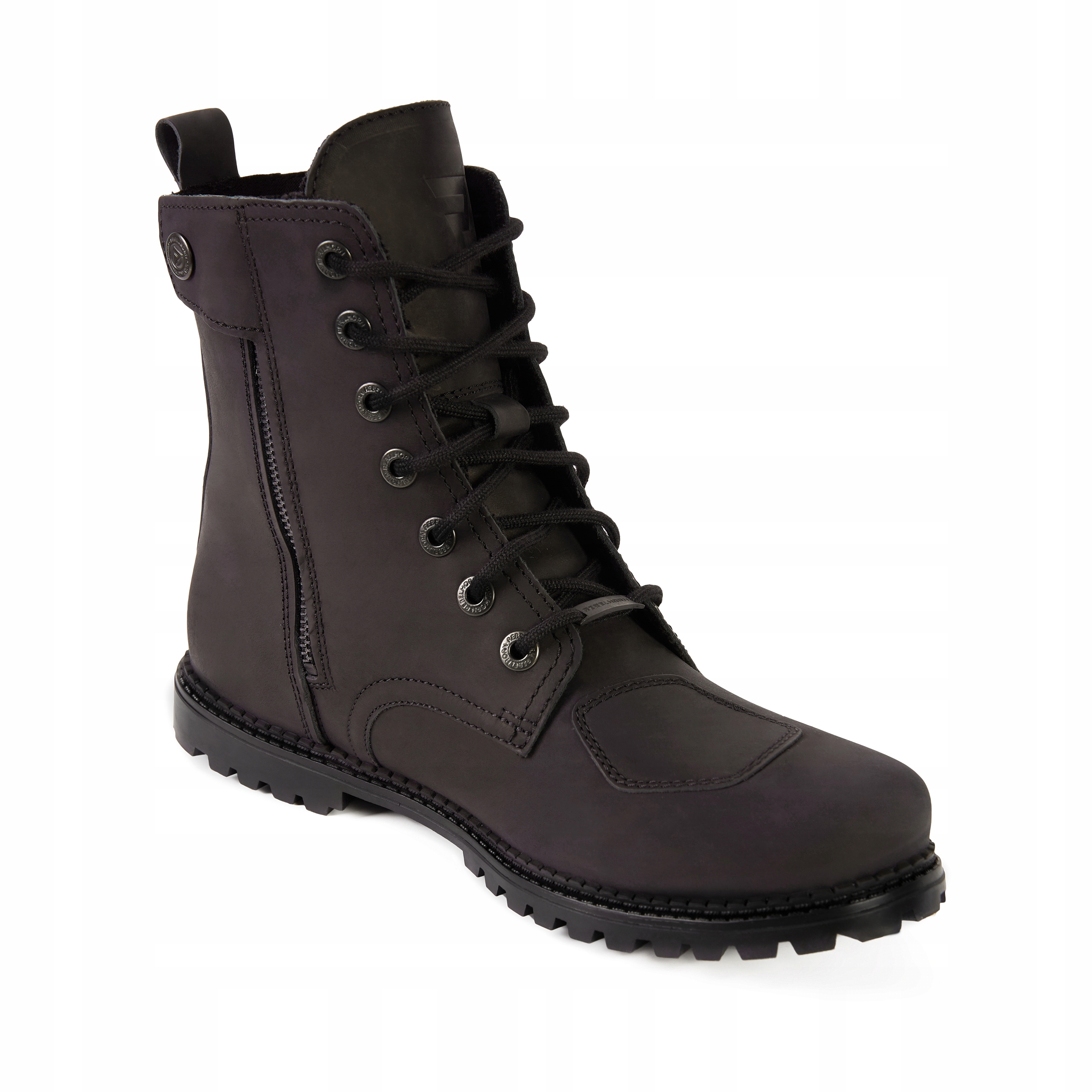 Взуття для мотоциклів Rebelhorn Nomad виготовлено з натуральної шкіри у зовнішньому шарі та натуральної шкіри у підкладці. Захист забезпечують жорсткі накладки на п'яту, протектори для щиколоток і численні посилення. Взуття Rebelhorn Nomad завдяки піні Ortholite також ефективно поглинає вібрації під час їзди на мотоциклі.