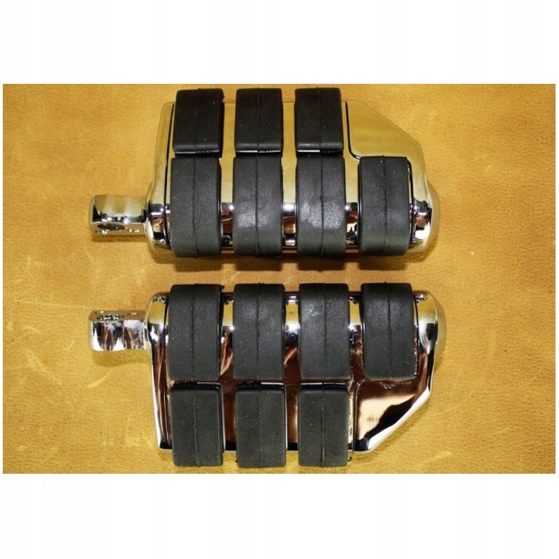 підніжки були виготовлені з металу І гуми, вони хромовані.гумові елементи запобігають зісковзуванню ноги з підніжки. Висока якість виконання І безшовний монтаж.є універсальними - підходять для gmoli діаметром 1 дюйм 25.4 mm з використанням пластикових втулок.
