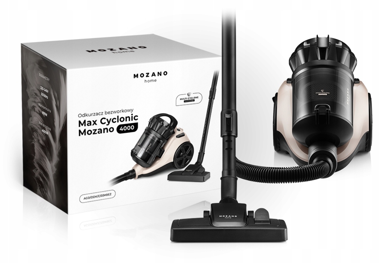 У пилососі Mozano MAX Cyclonic 4000 використовується технологія MultiCyclone , яка забезпечує виняткову ефективність пилососа. Завдяки циклічній дії пристрій ефективно відокремлює пил і забруднюючі речовини з повітря, що перетворюється на чистіше та здоровіше повітря. Ця технологія є більш ефективною, ніж традиційні системи , оскільки вона затримує більше дрібних частинок пилу.