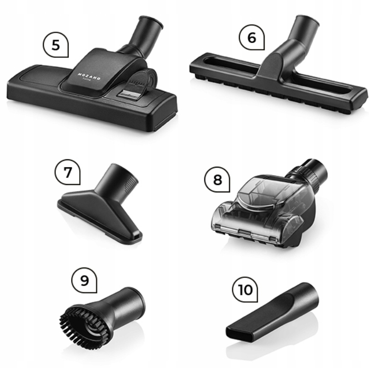 Пилосос оснащений багатим набором аксесуарів включаючи турбощітку, щітки для різних поверхонь і щілинні насадки. Завдяки більшому діаметру труби і довшому кабелю робочий діапазон становить до 10 м, що дозволяє зручно очищати великі поверхні.