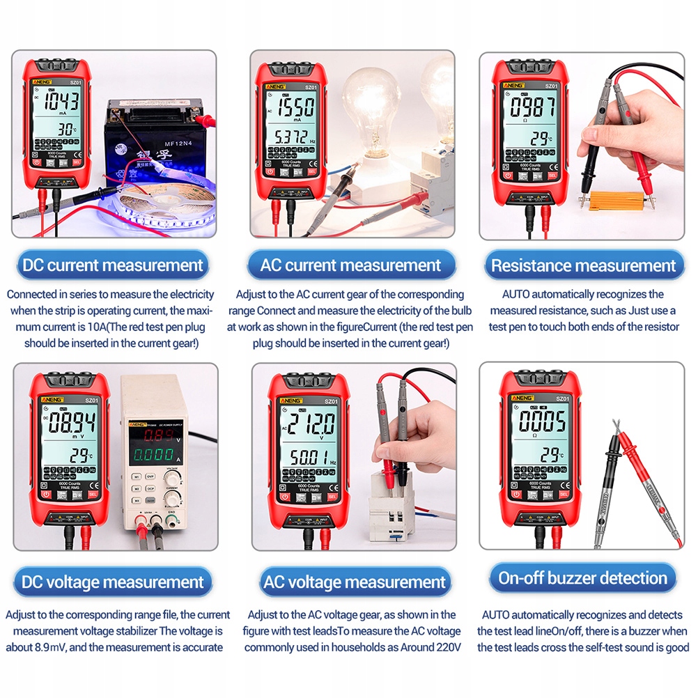 постійний струм: діапазон: 20ma10a, роздільна здатність: 1ma0.01A, точність: +/(1.0% + 5)