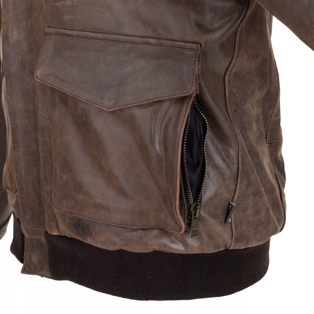 Стильна куртка з нашивками, коміром і трикотажною обробкою, міцна волова шкіра, багато кишень, міцні блискавки.