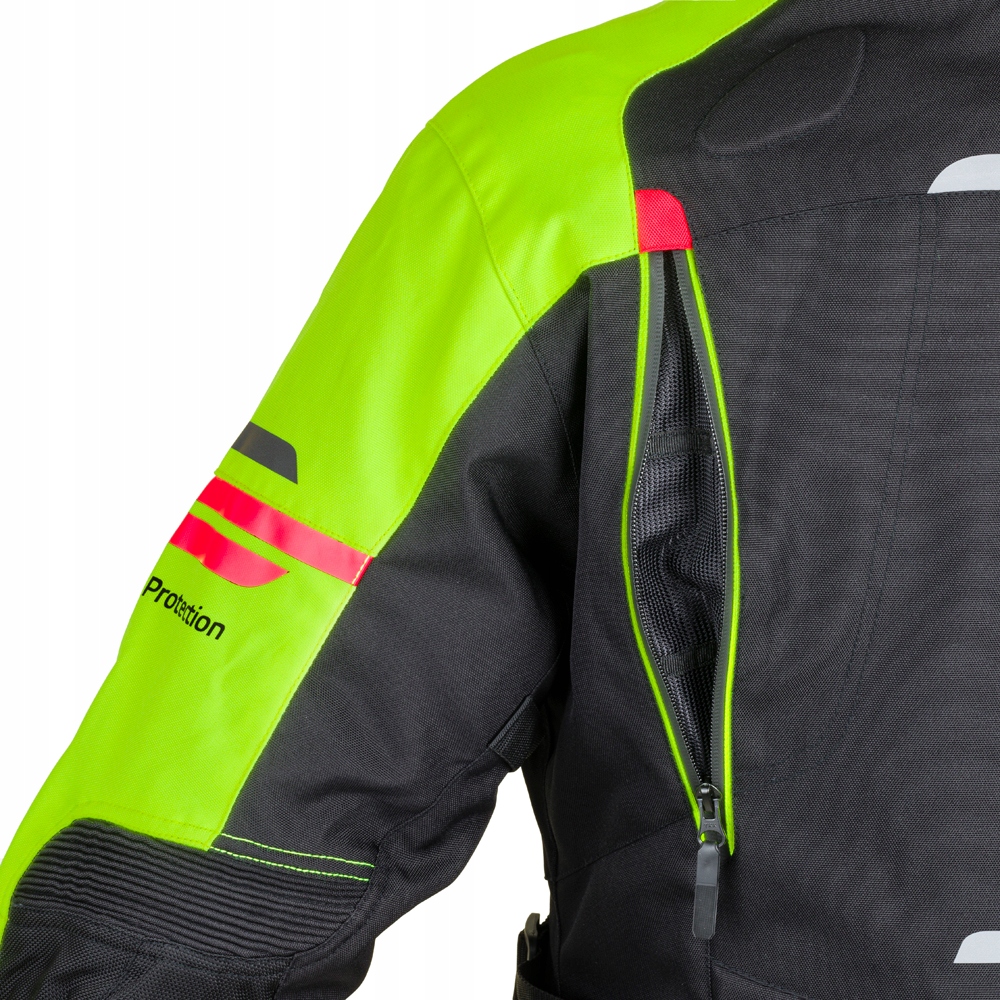 Ви також можете оцінити численні практичні кишені, які можуть вмістити всі ваші речі - головною особливістю цієї куртки є велика задня кишеня. Липучки на рукавах, талії та з боків дозволяють підігнати розмір куртки під вашу фігуру. Еластичні налокітники, м'який неопреновий комір та інші дрібні деталі забезпечують додатковий комфорт. Відмінні властивості, спортивний дизайн і практичні деталі зроблять задоволеним кожного мотоцикліста.