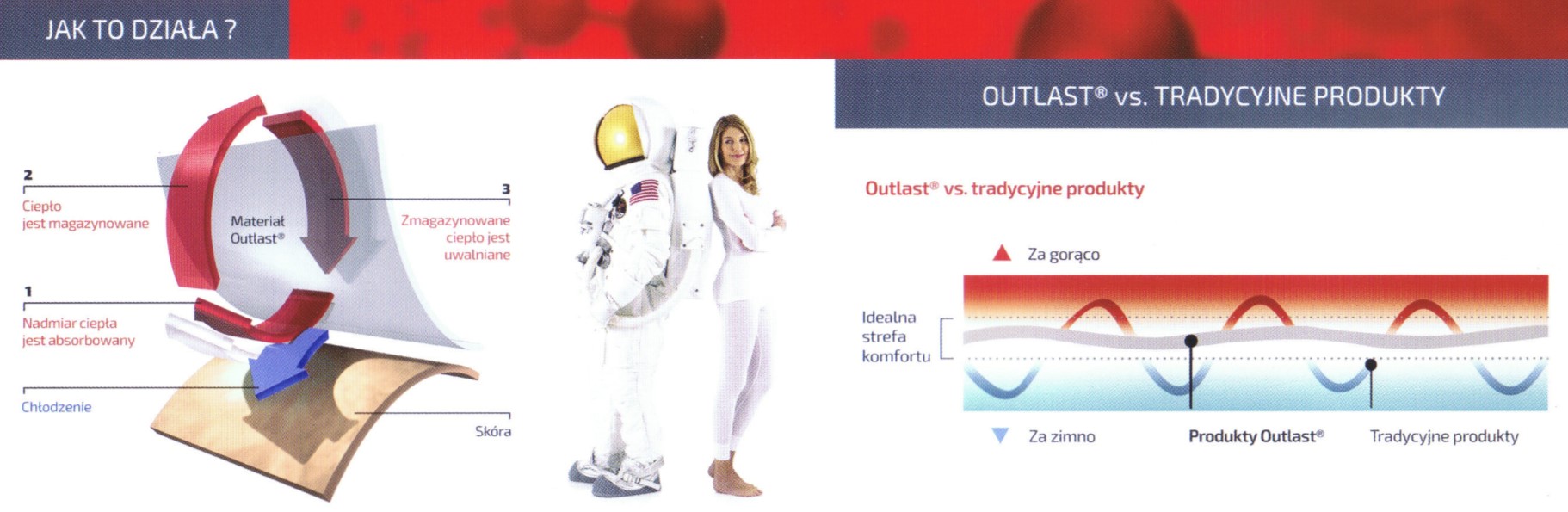 Outlast® - це матеріал, винайдений НАСА для виготовлення костюмів для астронавтів. Він швидко знайшов застосування у виробництві спеціалізованої спортивної та туристичної одягу.