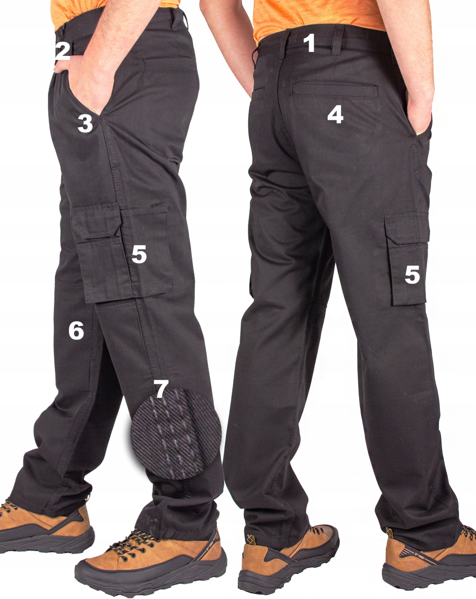 ► робочі штани-карго, тобто робочі штани з кишенями, характеризуються великою кількістю кишень, що полегшує зберігання дрібних або великих предметів, які можна мати під рукою.е>